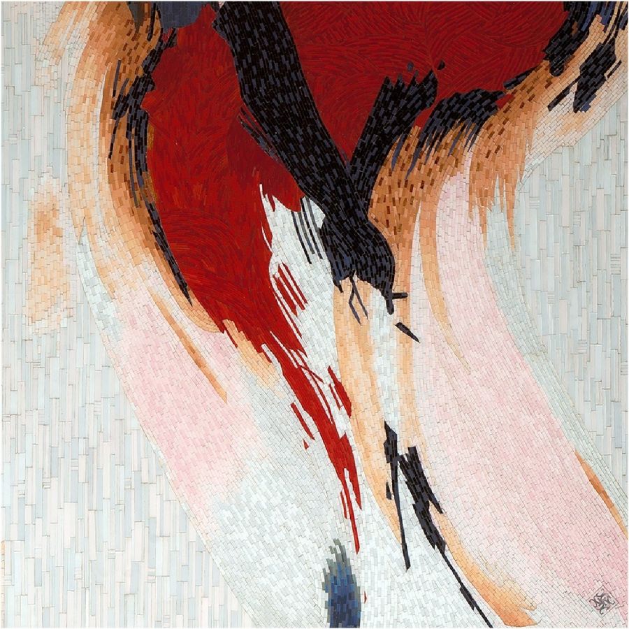 Wall mounted French cleat hanging system. Mosaic inlay of the highest quality, comprising of thousands of hand-cut and individually colored glass pieces.