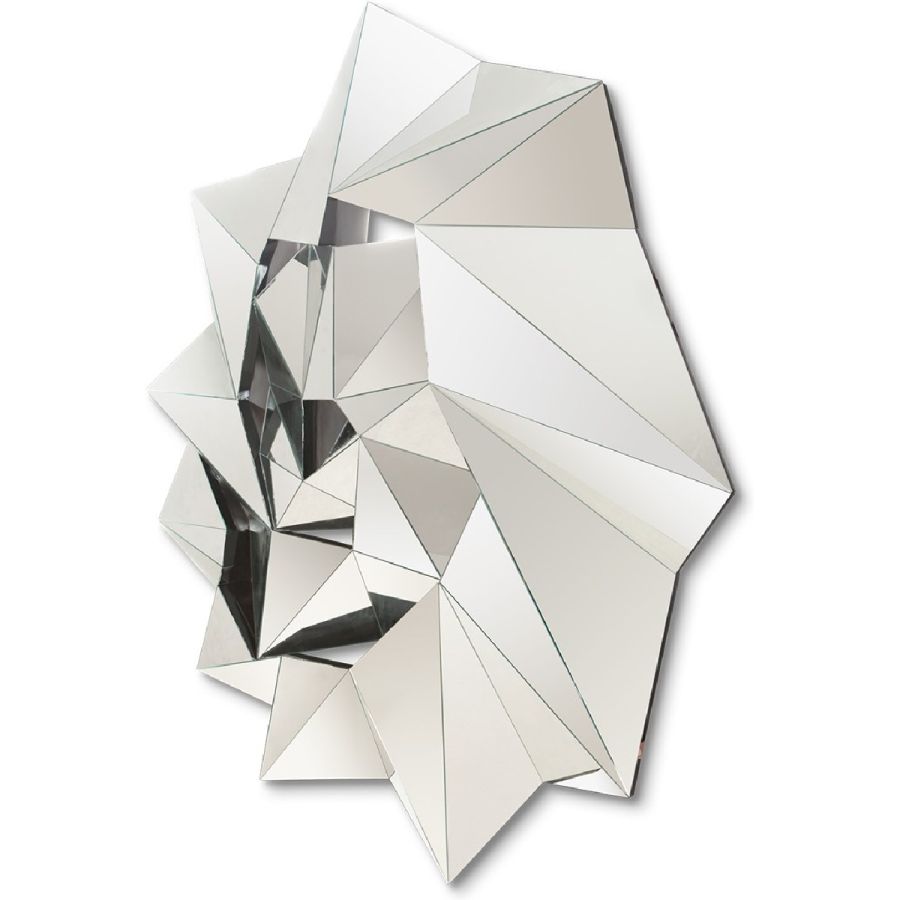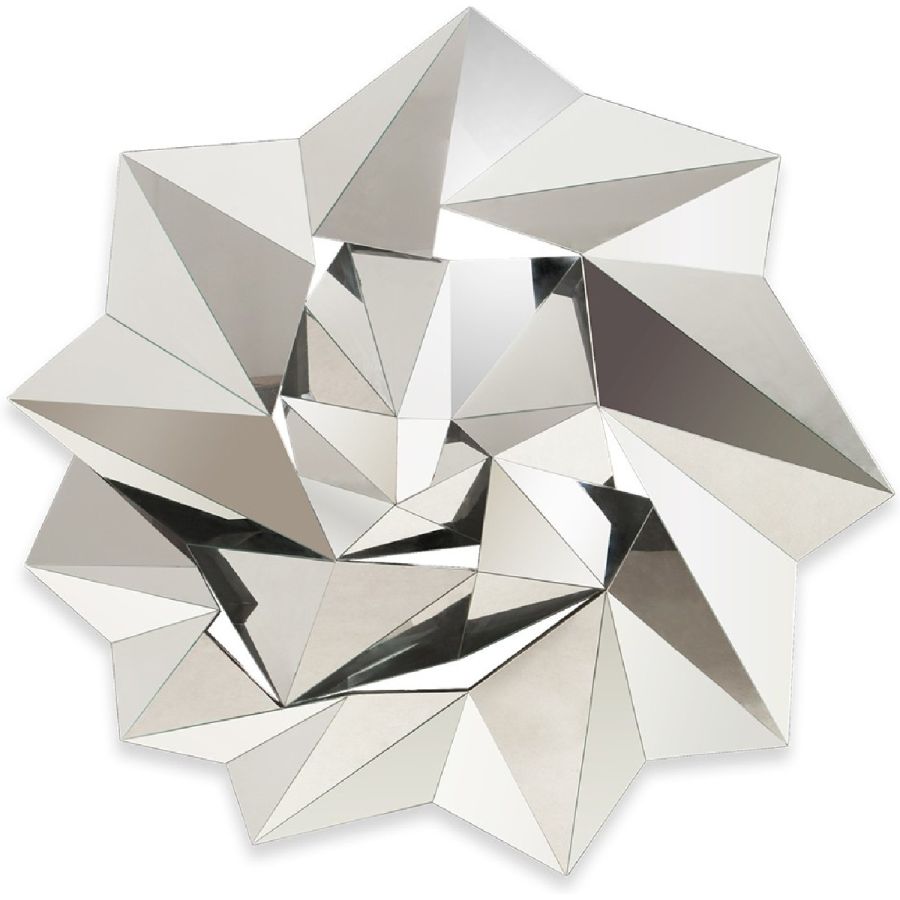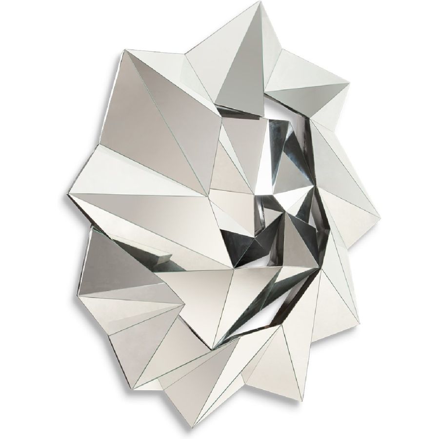 A twist of geometric shaped pieces forms this extraordinary unbeveled mirror frame.