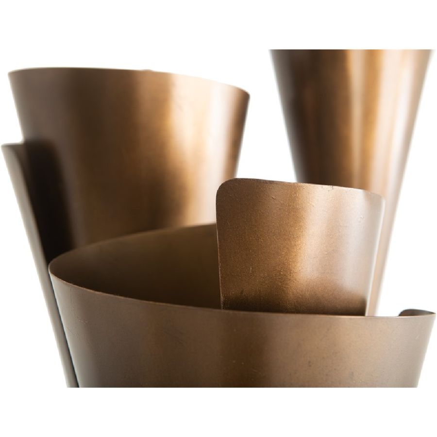 In an original variation on the classic wind chime, this beautiful artwork is formed of hand-beaten aluminium standing scrolls. When moved by the wind, the scrolls touch, emanating harmonious chimes. A stunning and meditative piece for entrances, conservatories or covered outdoor spaces.