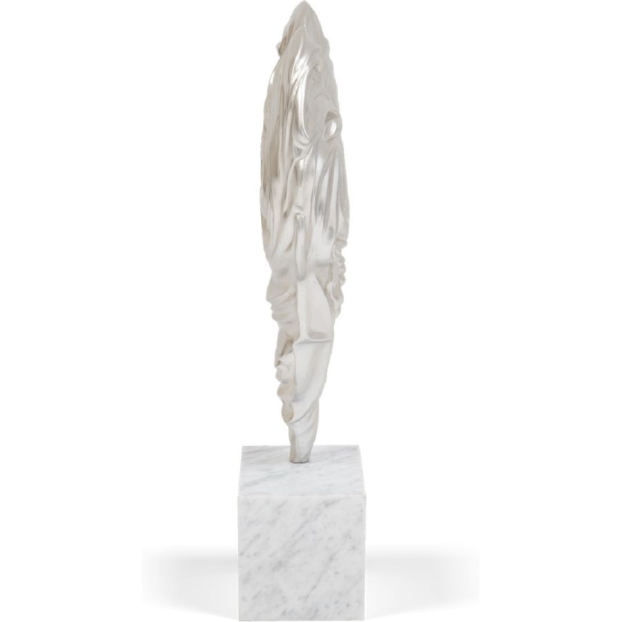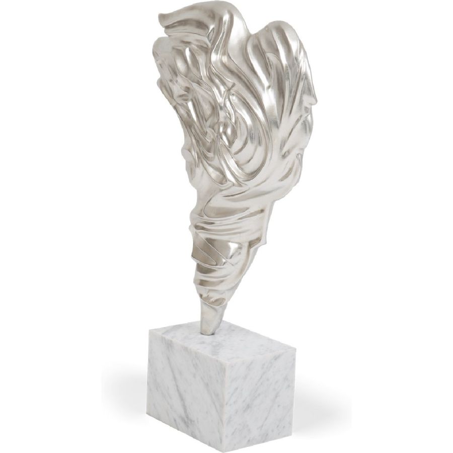 Inspired by the famed Hellenistic statue Winged Victory of Samothrace, this extraordinary sculpture is designed to be displayed on a table or plinth. Expertly carved from solid wood and embedded in a base of Nero Marquina marble, it makes for a spectacular statement art accessory.