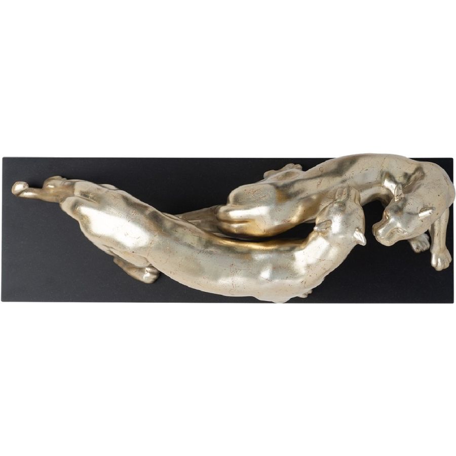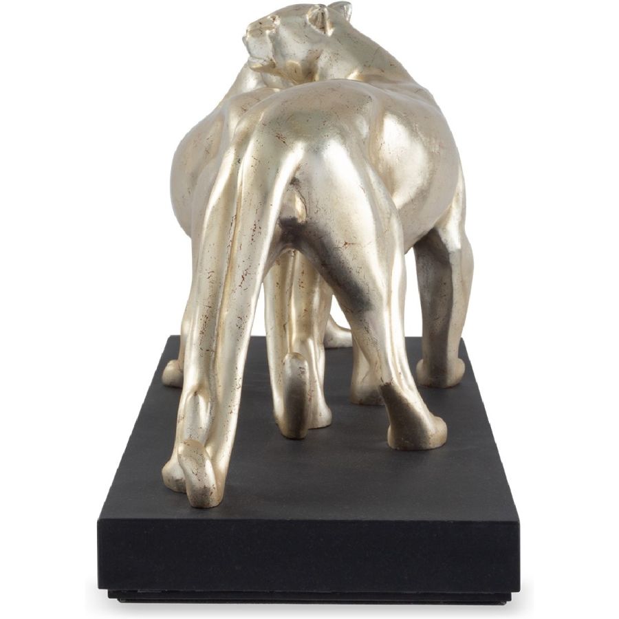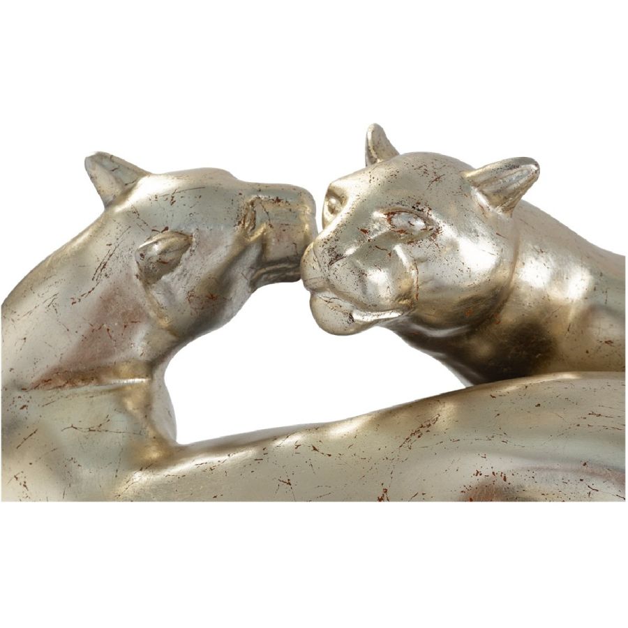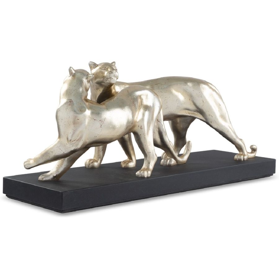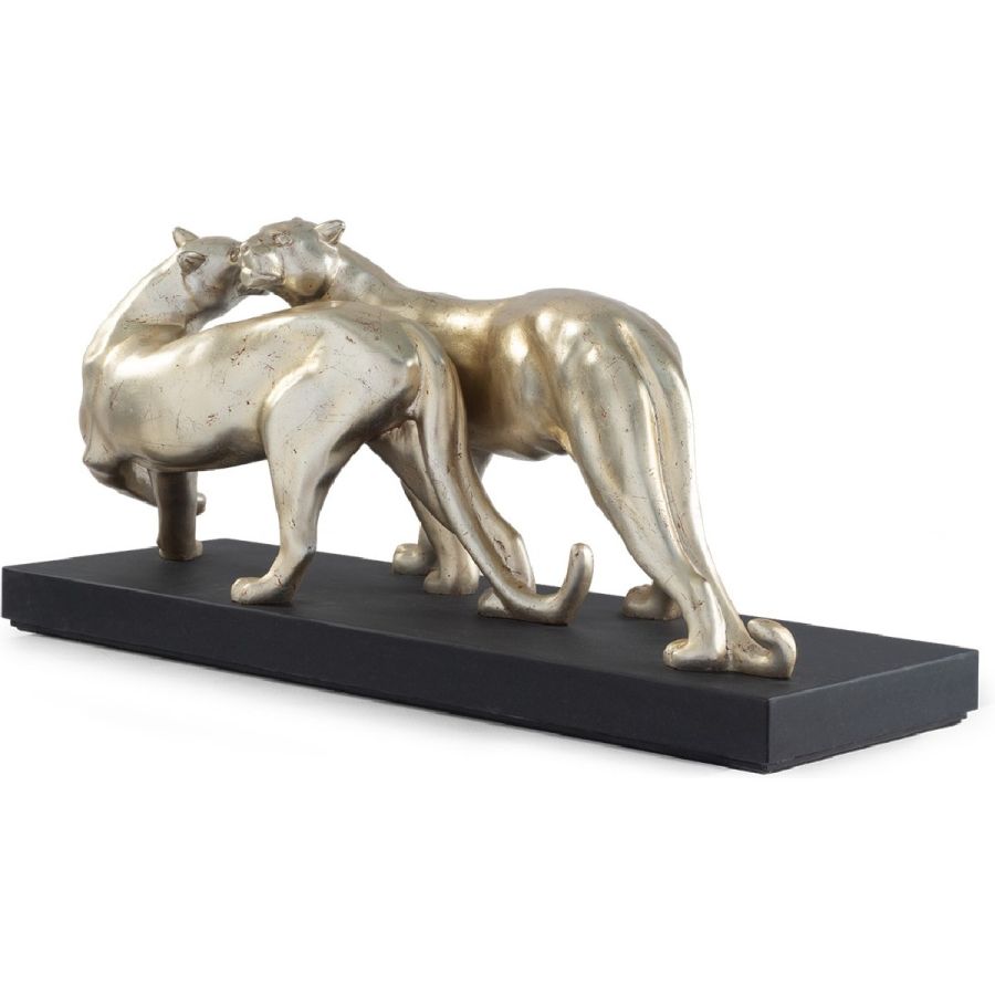 Two cast leopards playfully tease each other with grace and tenderness, lovingly displayed on a Nero plinth.