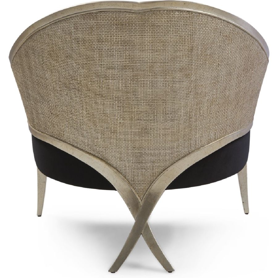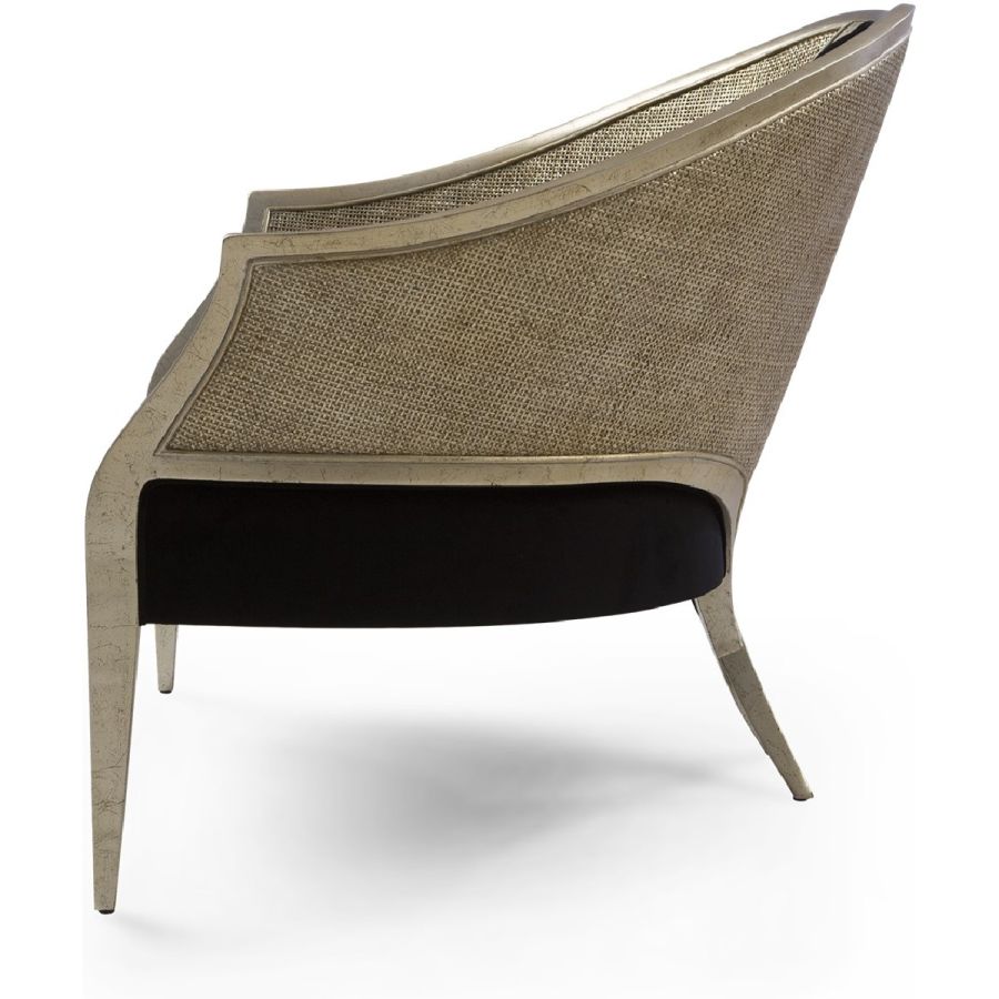 With its patented Chris-cross legs, this supremely elegant Bergère chair features a front oval detail, and linear front legs for a beautifully balanced appearance.