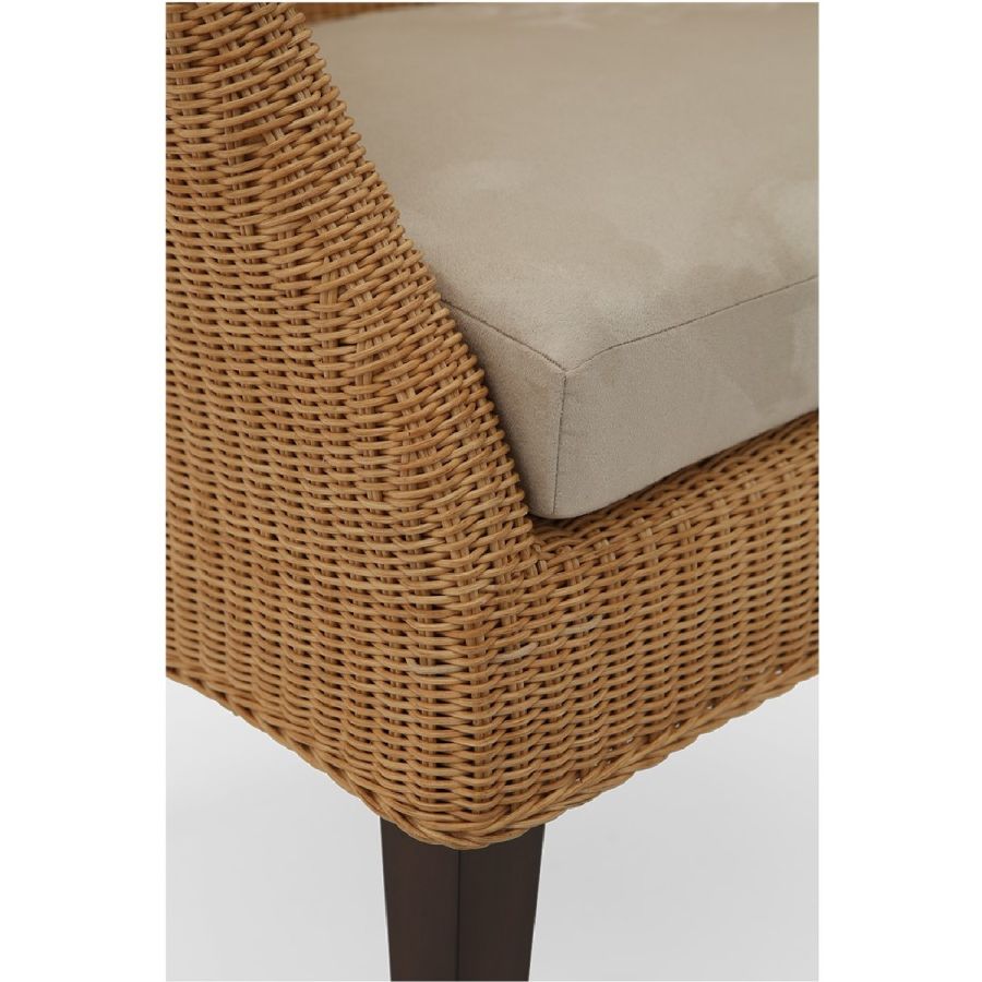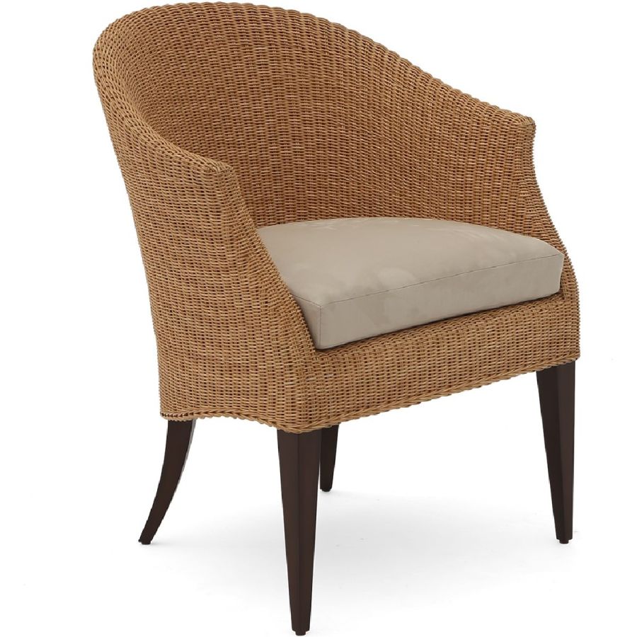 Doweled mortise and tenon frame in solid Mahogany from certified source. Mahogany legs. Hand-woven rattan, available in an array of finishes. For residential use only. Commercial use is classified as Special Order Design (SOD), and alternative materials may be required. Contact us for details.