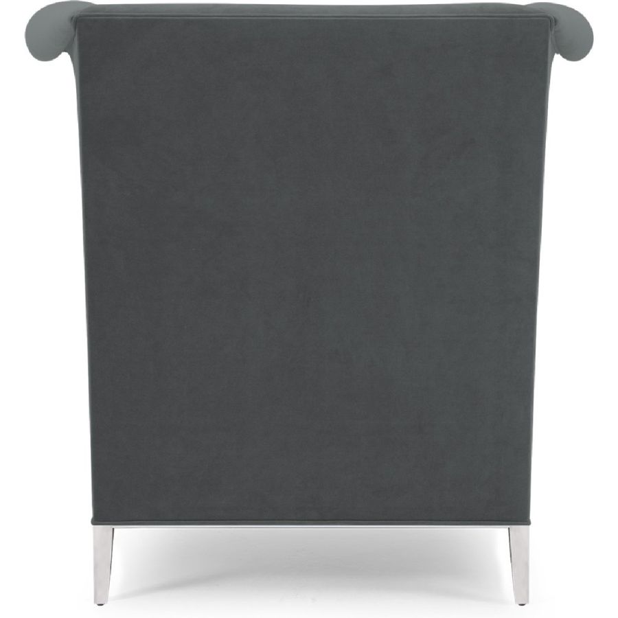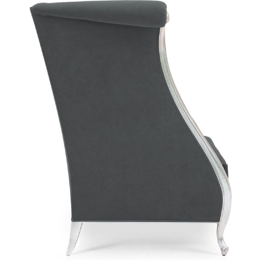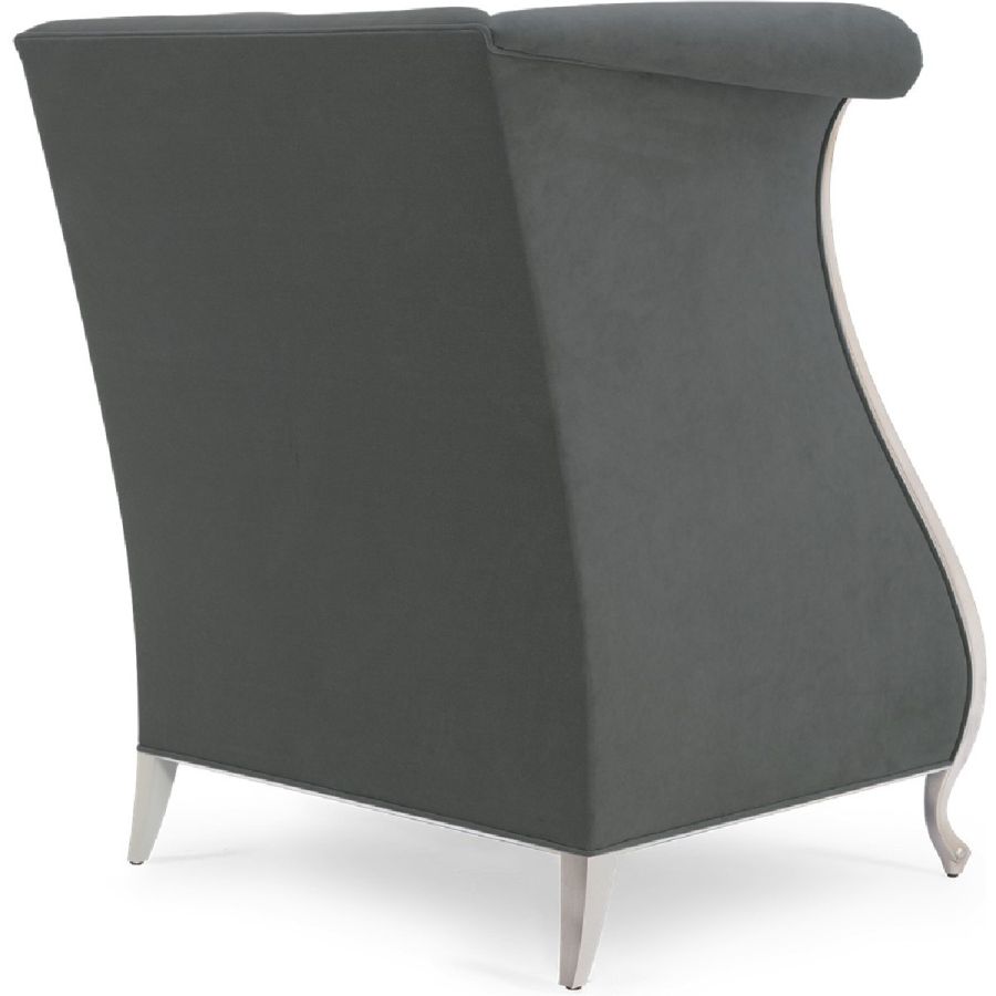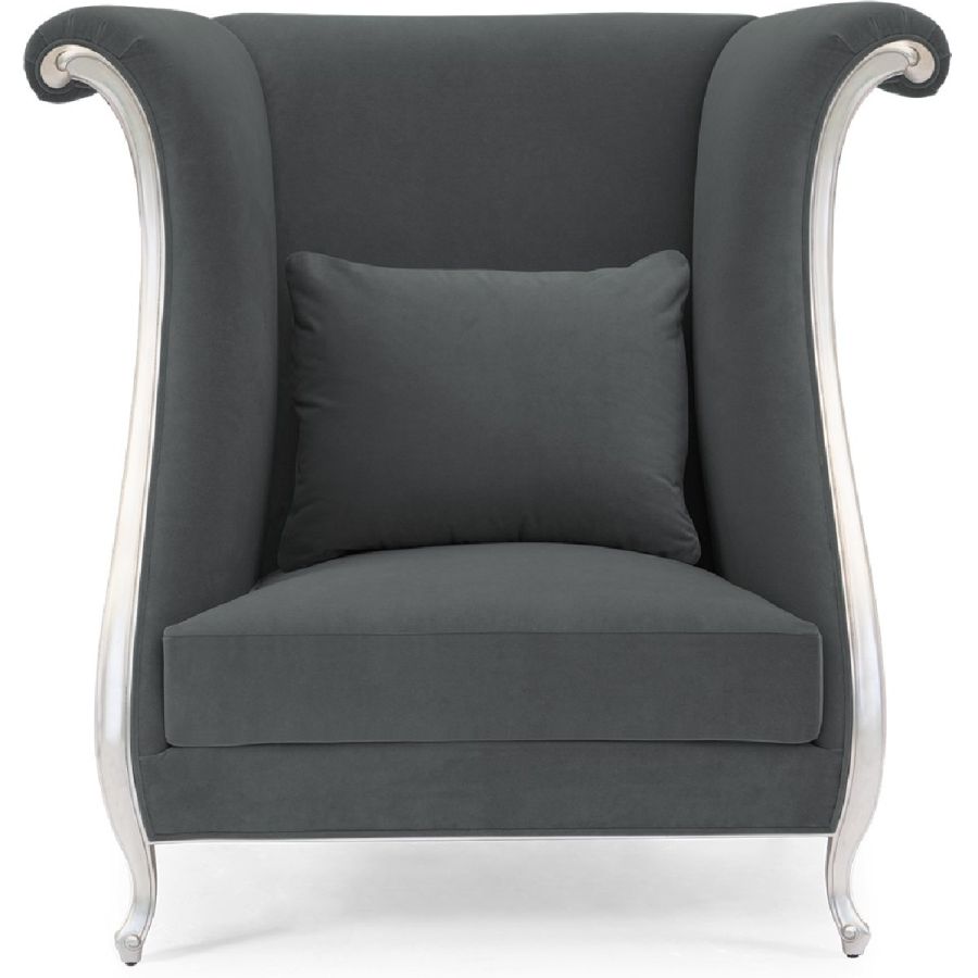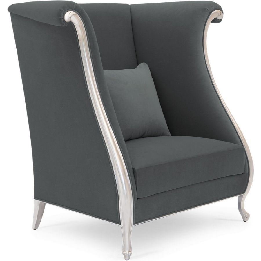 The feminine curves of this deep and sumptuous armchair bring comfort and a soft elegance to the high-back and arms.