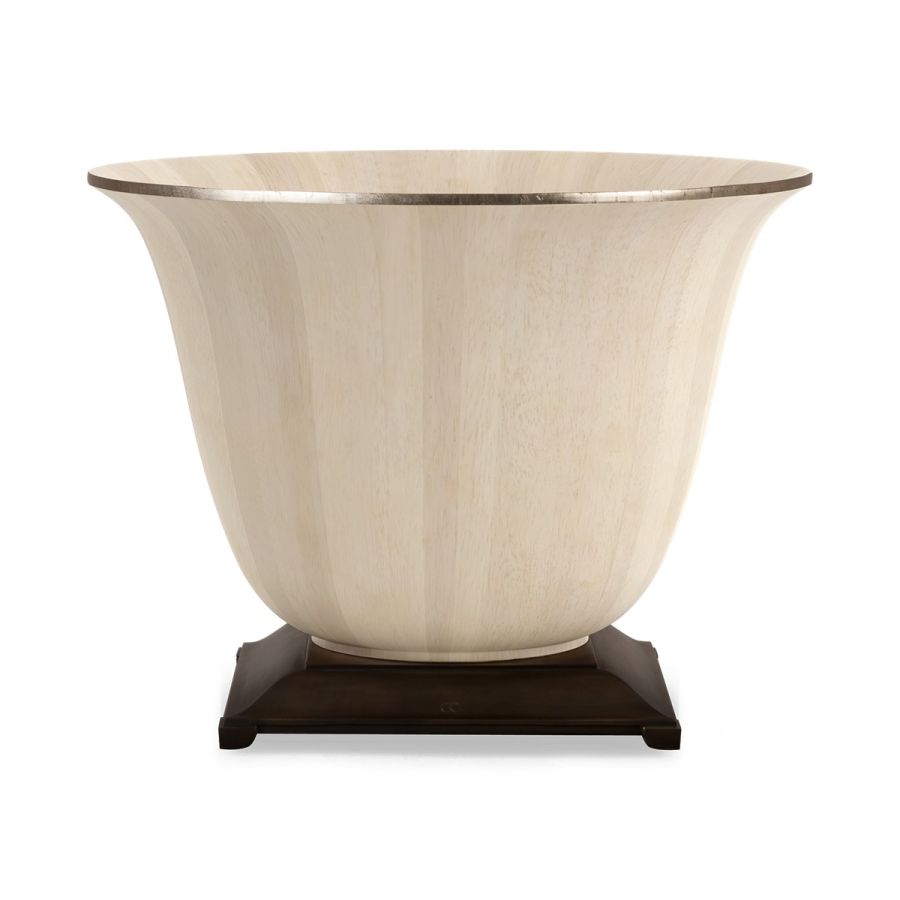 This sweeping, elegant jardinière features a gently curved lip, and will make a grand statement in any entrance, living or dining area. Can be used alone or as a set with the black glass pedestal topped with Nero Absolute Marble (46-0439).
