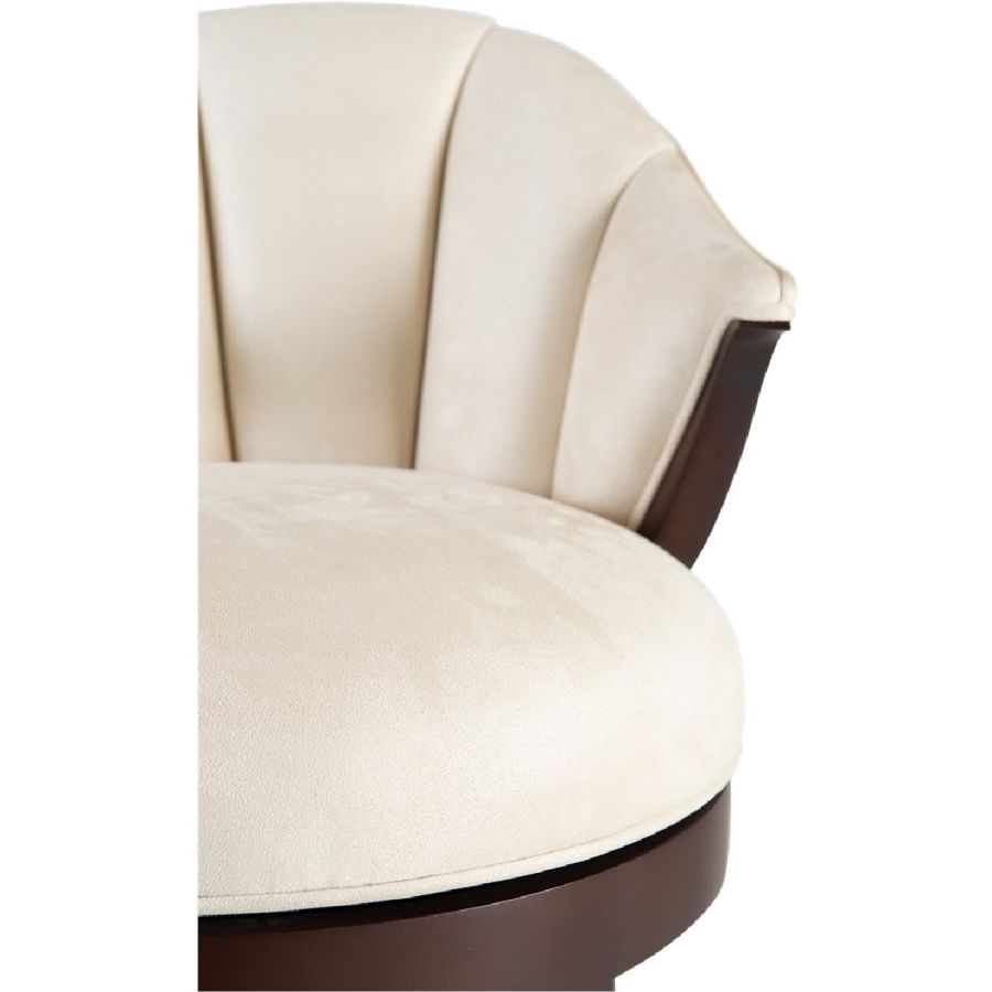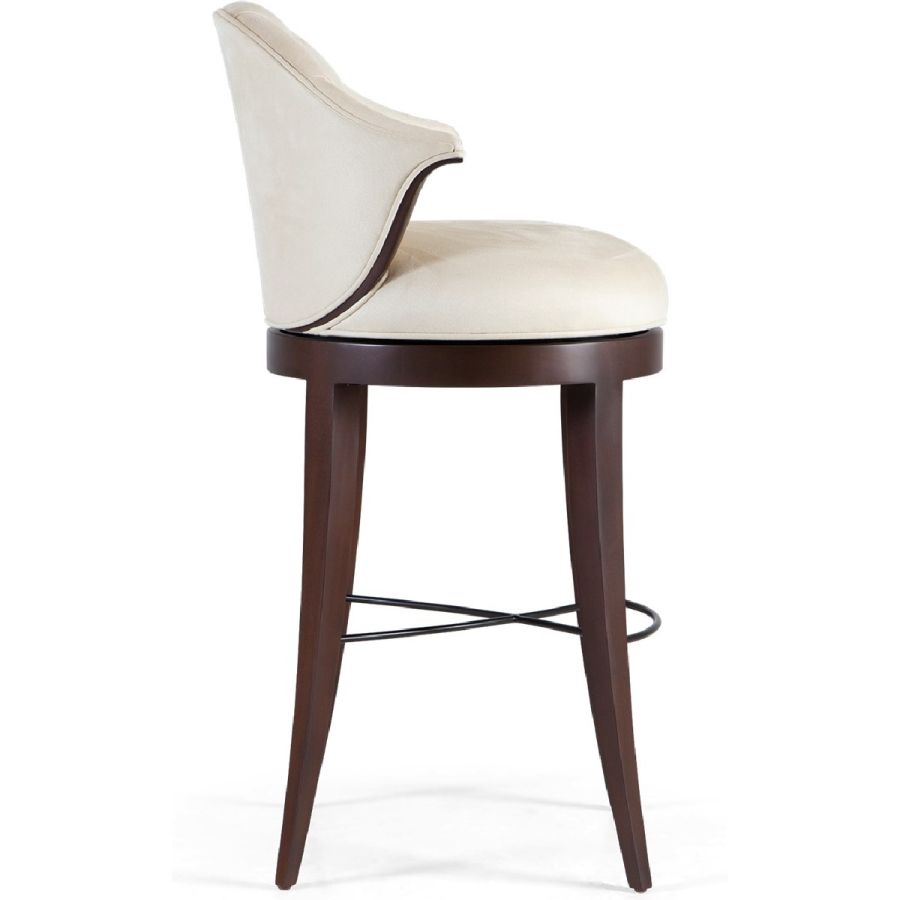 A wonderfully proportioned swivel barstool, with fluted back upholstery and Mahogany legs.