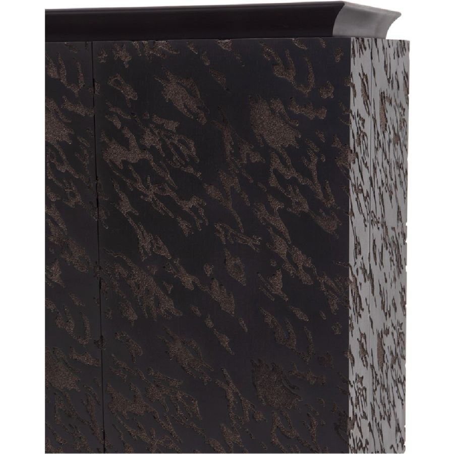 A bar cabinet that creates visual excitement even before the cocktails are served! The abstract embossed pattern is intricately and painstakingly hand carved.