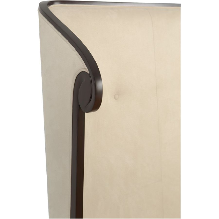 With a shelter design embellished with hand carved half scrolls, and a buttoned upholstered back, this elegant bed is the perfect piece to grace both modern and classic bedroom settings.