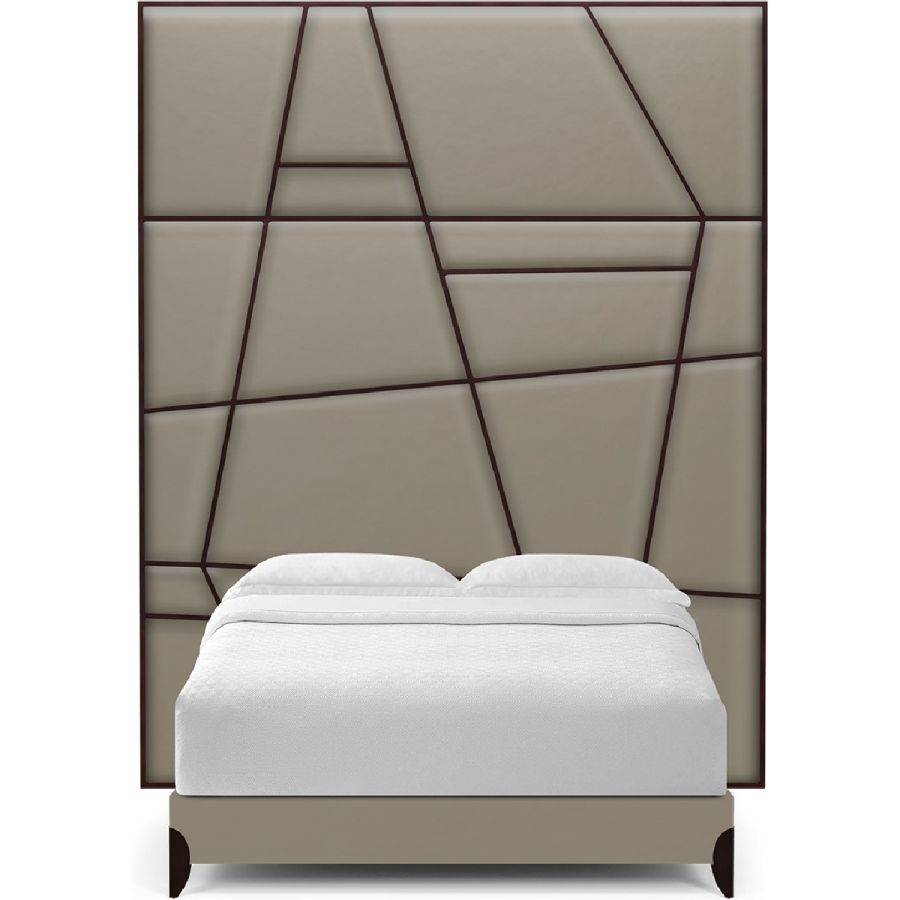 An elegant and hypnotic panel headboard and bed base set, designed with a headboard featuring 18 upholstered panes in irregular geometric shapes that fit into a high rectangular panel. Also available in a 3-panel wide version with bed base (20-0787) and a 6-panel wide version with bed base (20-0788).