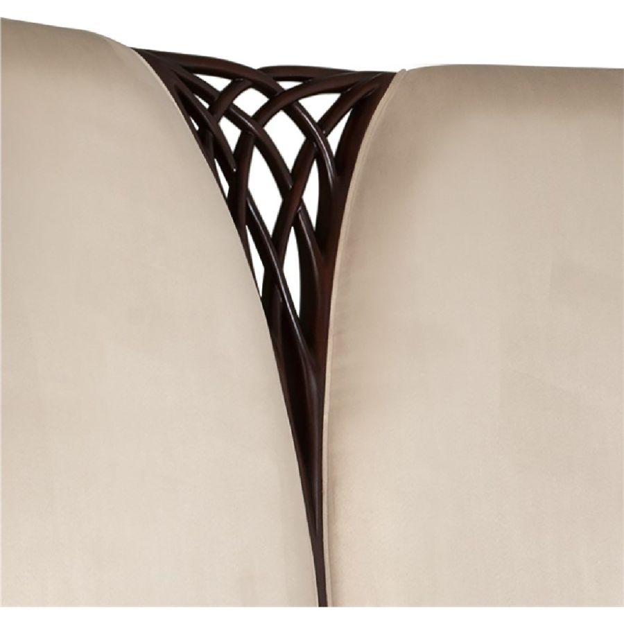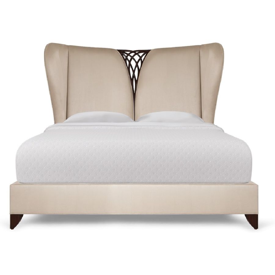 This magnificent bed features a delicately carved twine embedded as the centerpiece to the gently winged headboard. A true statement piece for any bedroom!