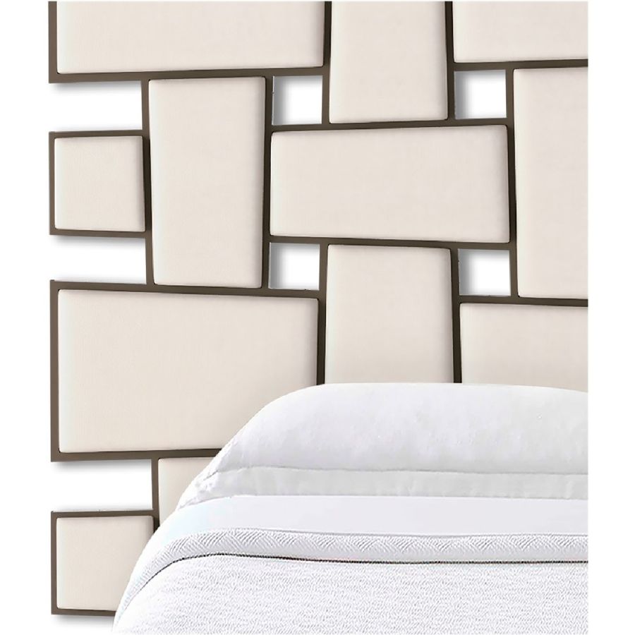 With a dramatic woven pattern featuring interlocking upholstered panels mounted in wooden frames, this spectacular headboard is inspired by the mirror created by Christopher Guy for the Chanel No.5 commercial.