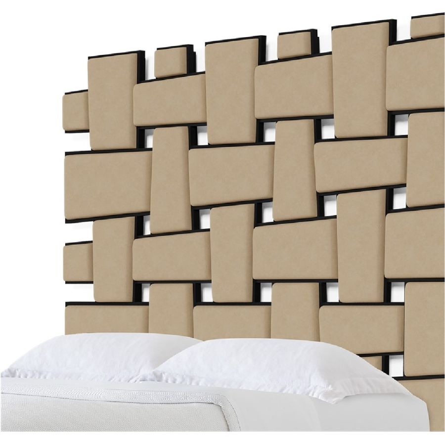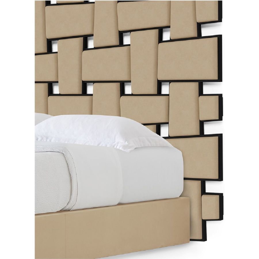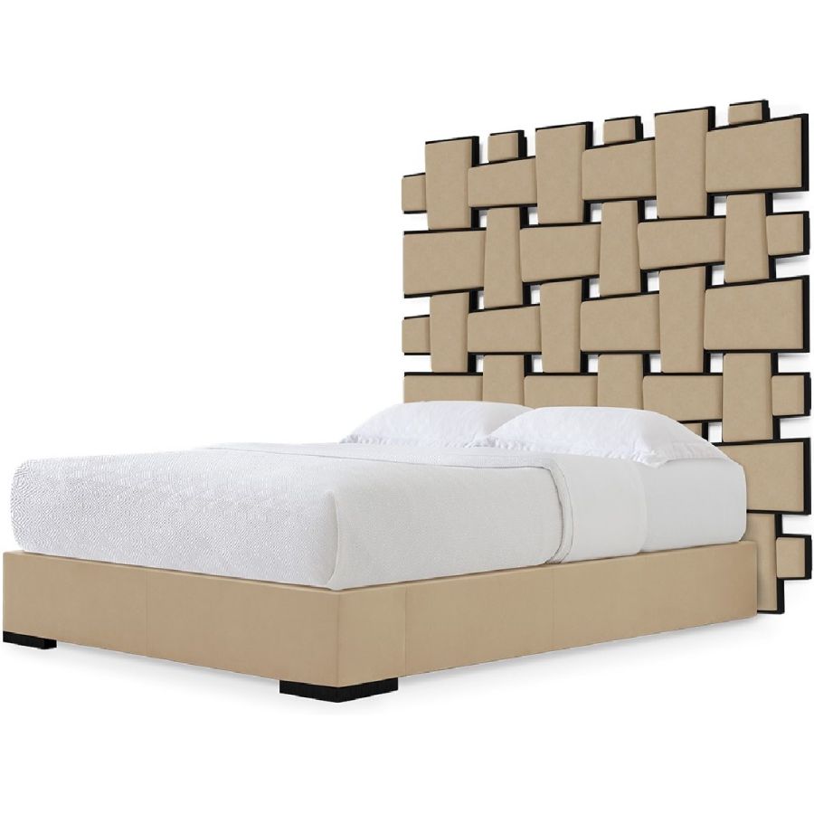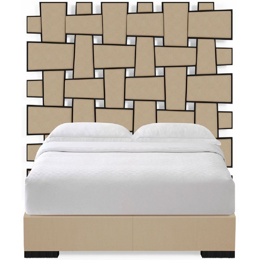 With a dramatic woven pattern featuring interlocking upholstered panels mounted in wooden frames, this spectacular bed is inspired by the mirror created by Christopher Guy for the Chanel No.5 commercial.