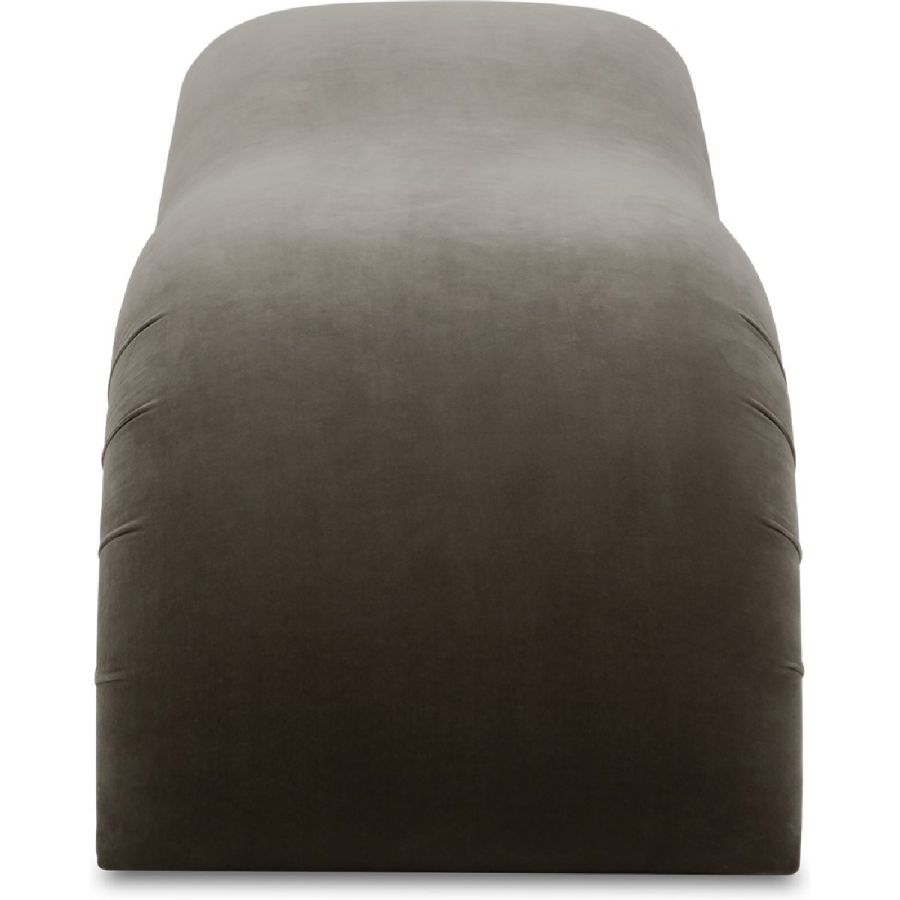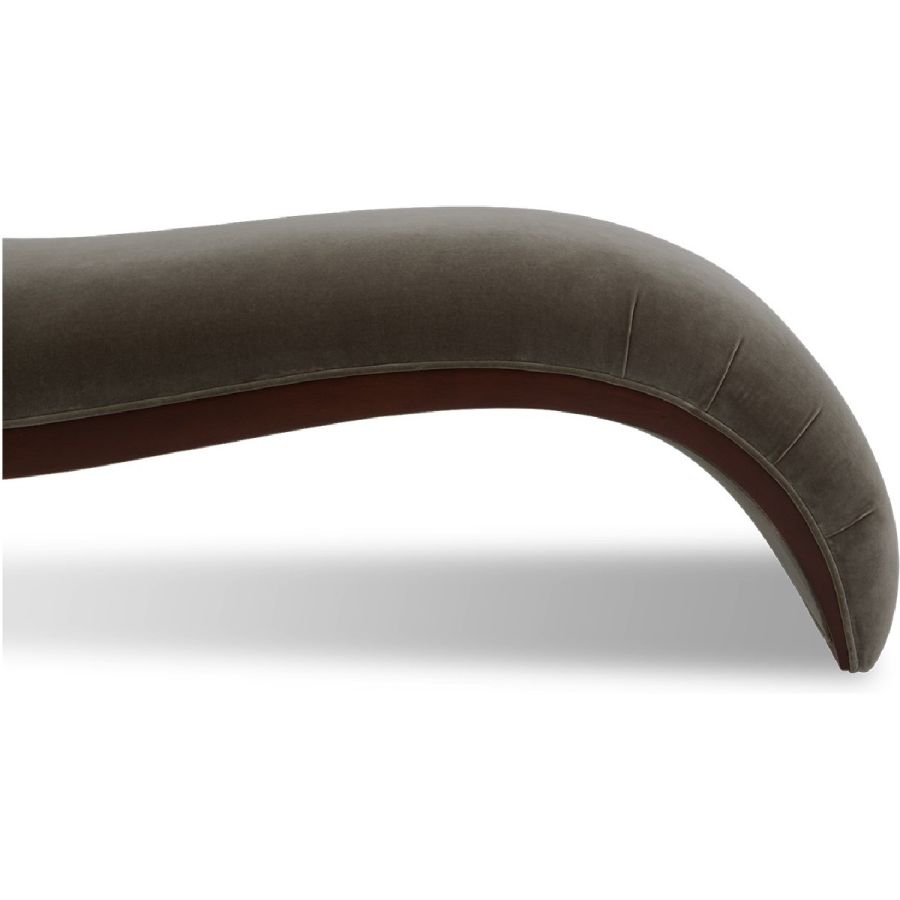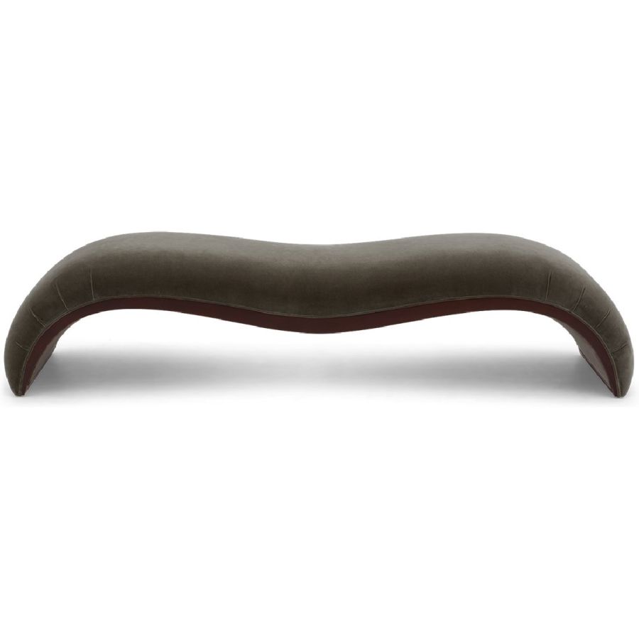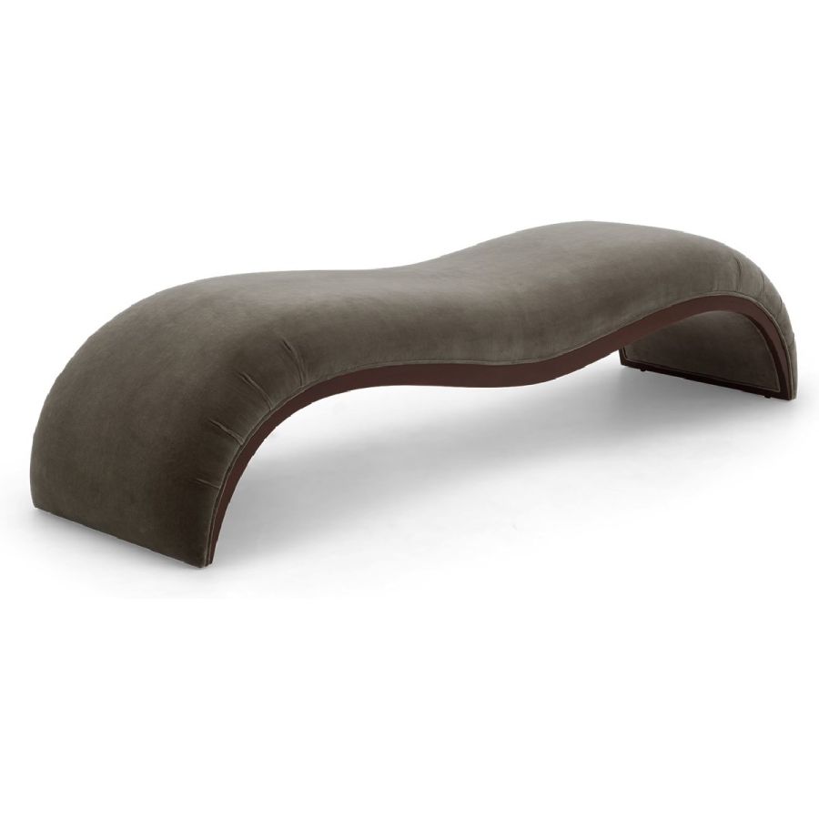 A single, mesmerising curve forms a wave-shaped bench, beautifully designed for reclining and lounging. The hand carved wooden base forms a visible central line, with the covered underside reinforcing the impression of a gentle ripple in water. Meditation and calm embodied… Also available as a chaise (60-0795)