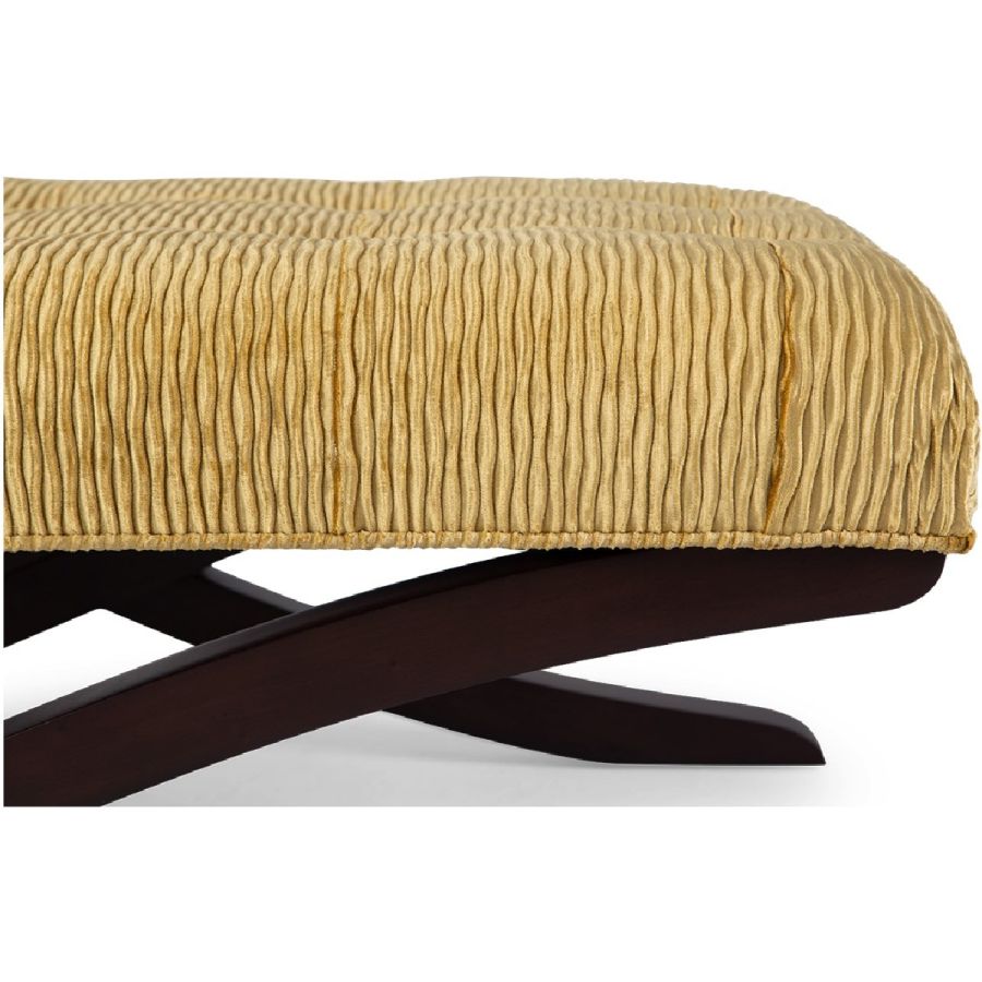 Hand Carved Mahogany hardwood from certified source. Signature 'Chris-Cross' patented legs. Sag free Sinuous springs. Buttonless tufting exuding a fresh and timeless geometric style. Available in a selection of finishes. For residential use only. Commercial use is classified as Special Order Design (SOD), and alternative materials may be required. Contact us for details.