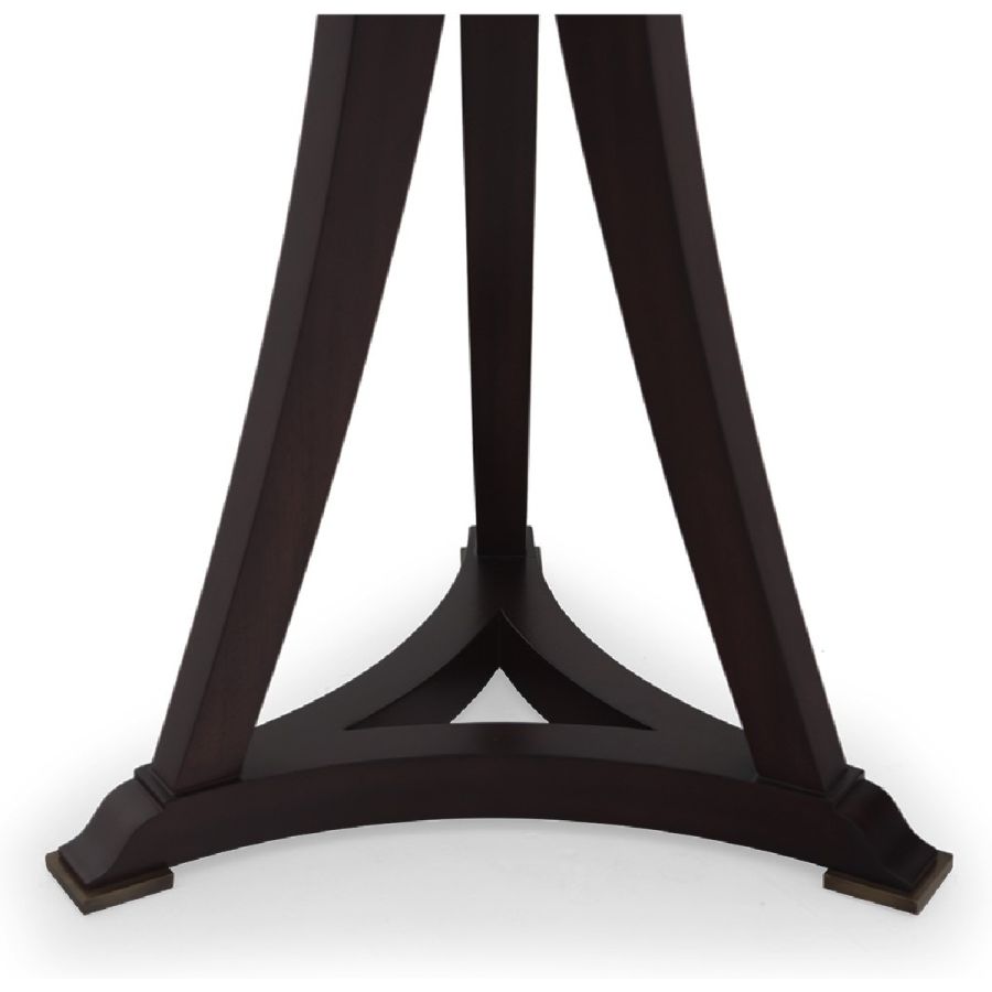 With the elegance of a glider, this aeronautical inspired tripod bistro table with curved triangular base and square brass feet is an elegant piece to grace any interior.