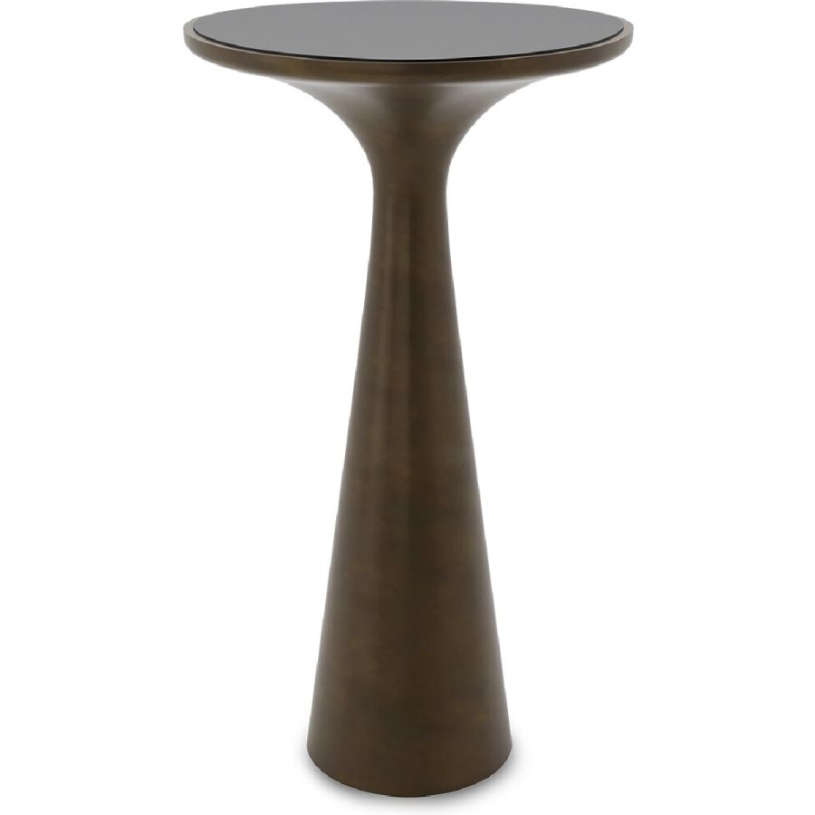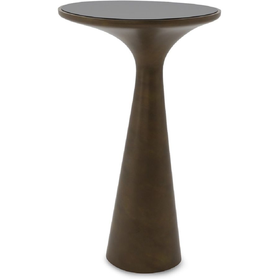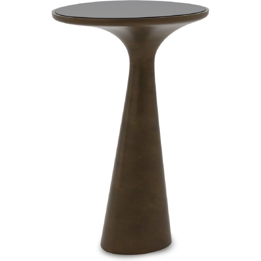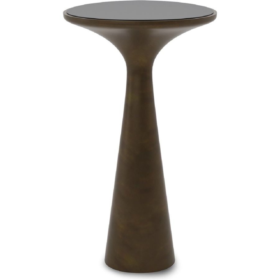 This truly delightful side or cocktail table features a high-waisted asymmetric rounded resin base and uneven ovoid black tempered glass top.