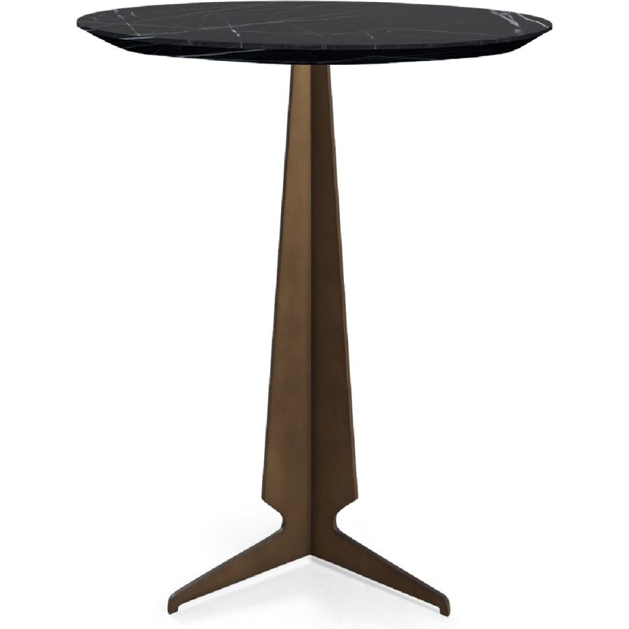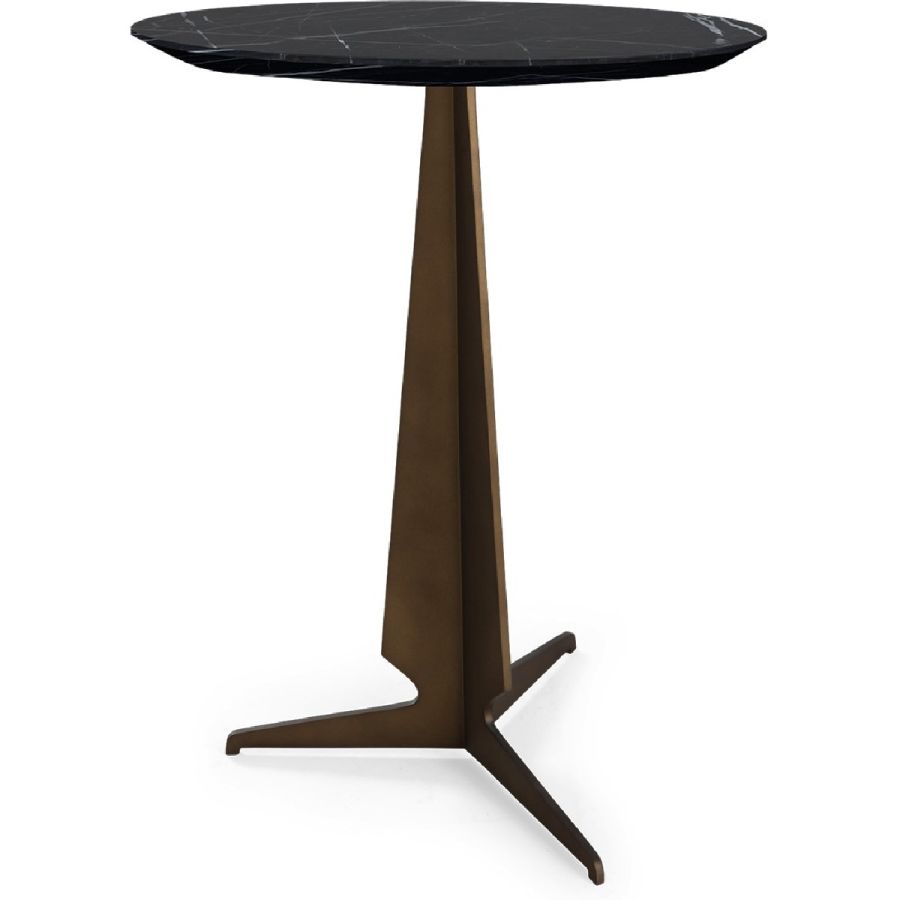A stylish modern styled bistro/side table with pyramidal metal base.