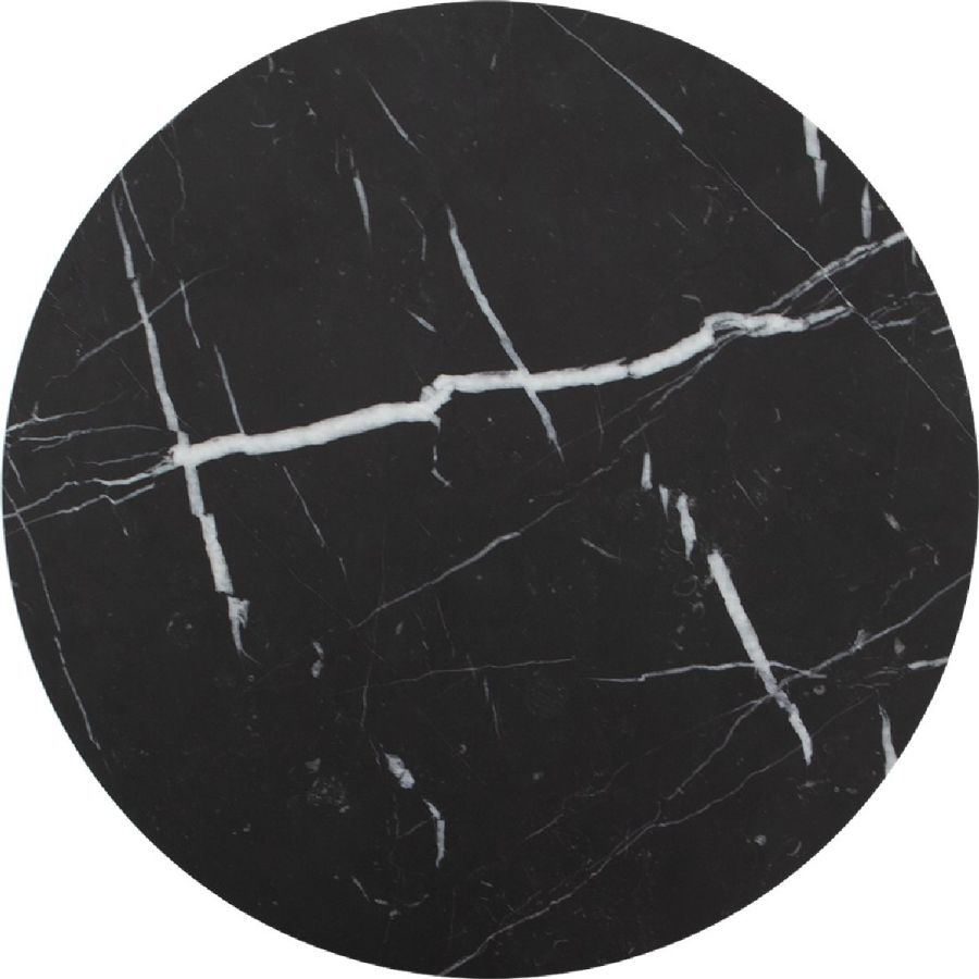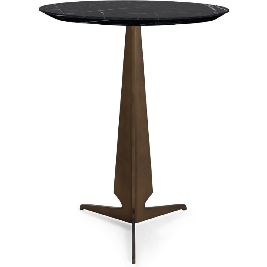 Forged Iron base. Solid marble top. For residential use only. Commercial use is classified as Special Order Design (SOD), and alternative materials may be required. Contact us for details.