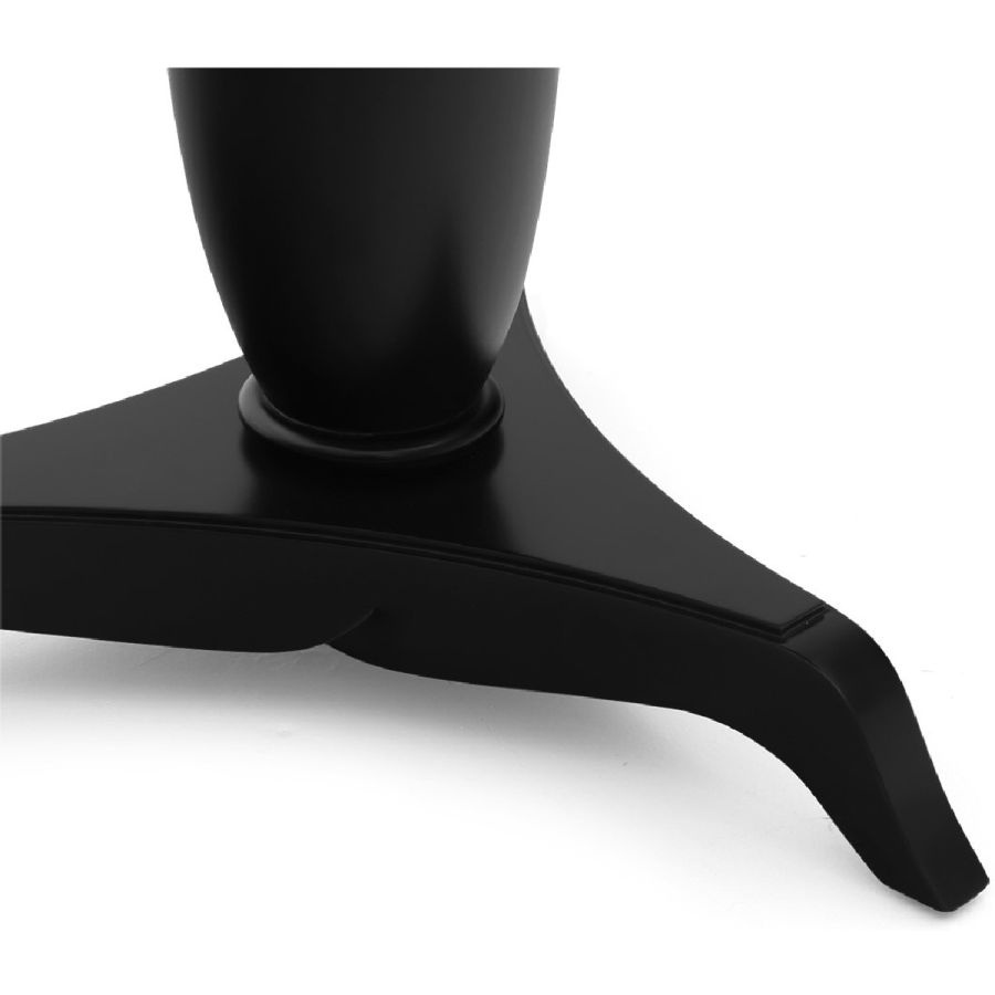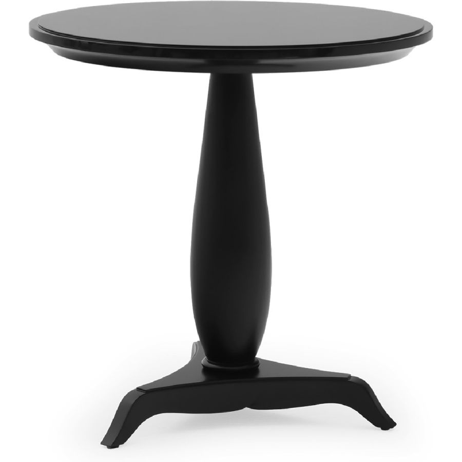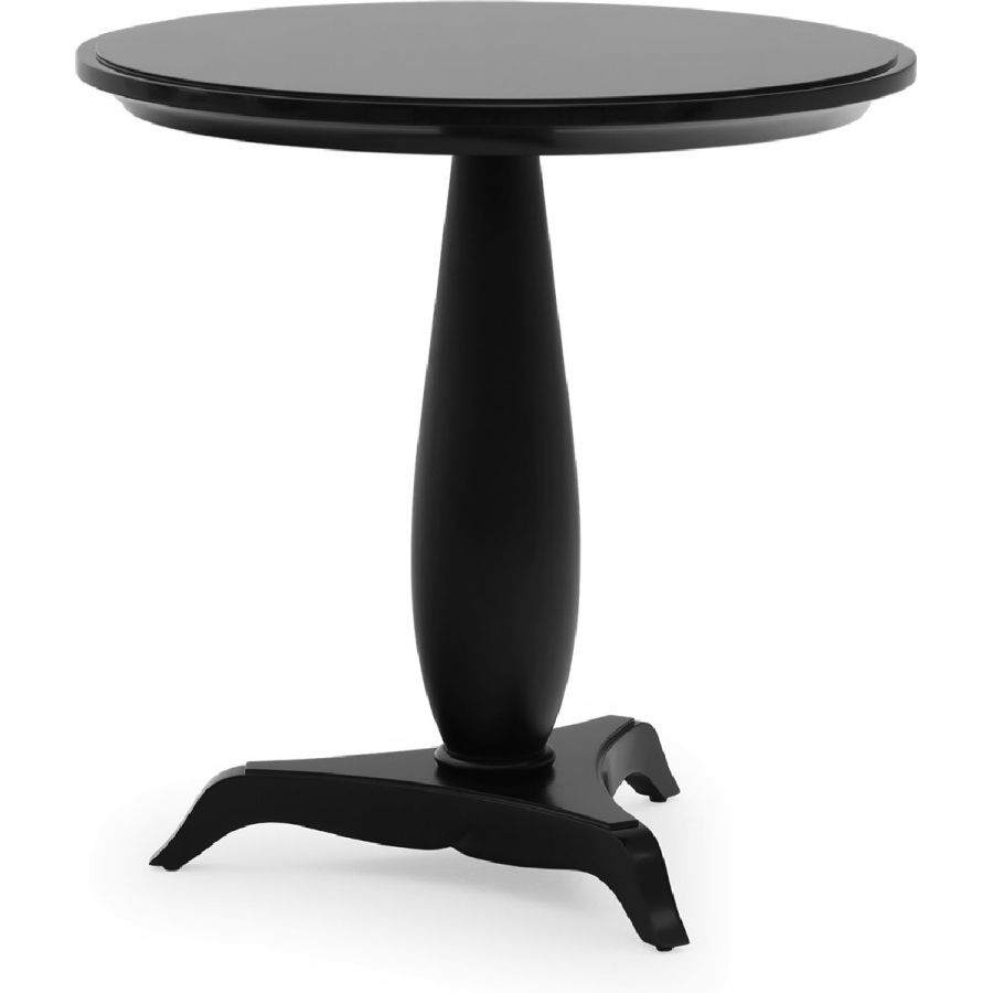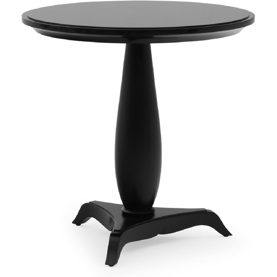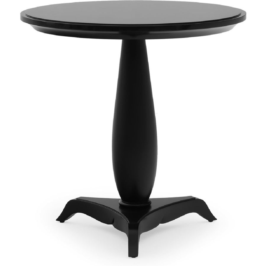 An occasional bistro/side table embodying all the understated elegance of Mademoiselle's little black dress. The feminine curves of the legs are complemented by the subtle finish.
