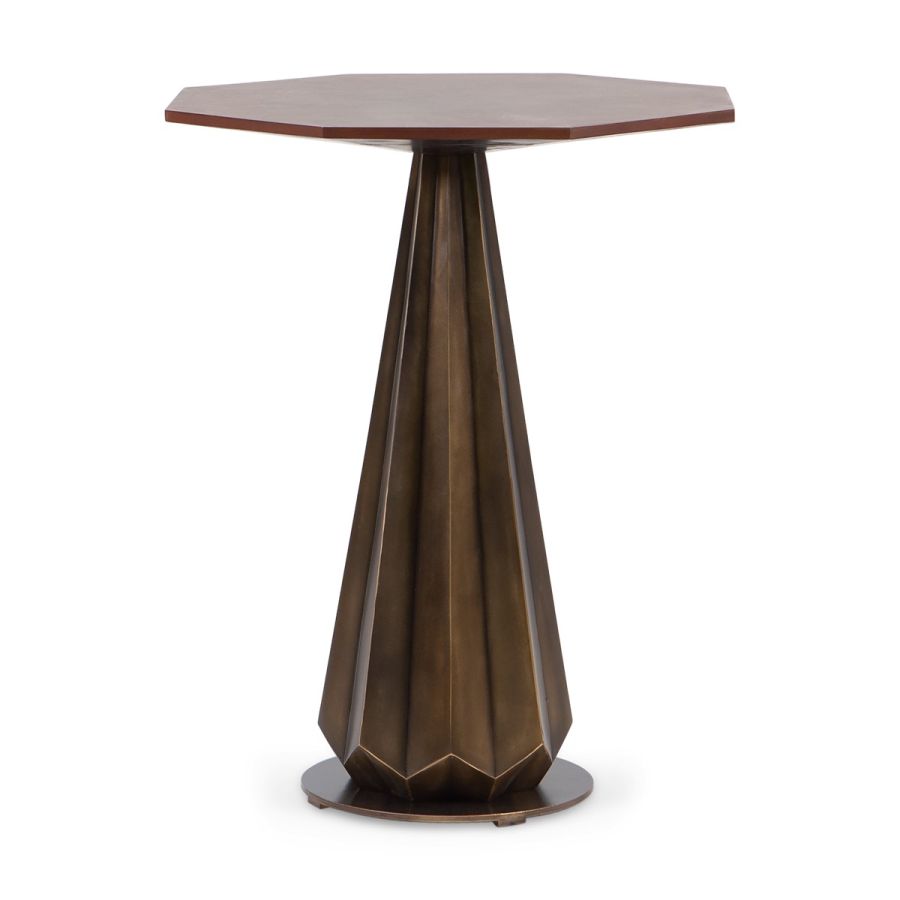 With a stunningly simple hand carved wooden octagonal top poised on a beautiful fluted stand and a round metal base, this delightful side table is the perfect accent piece for classic and contemporary interiors.