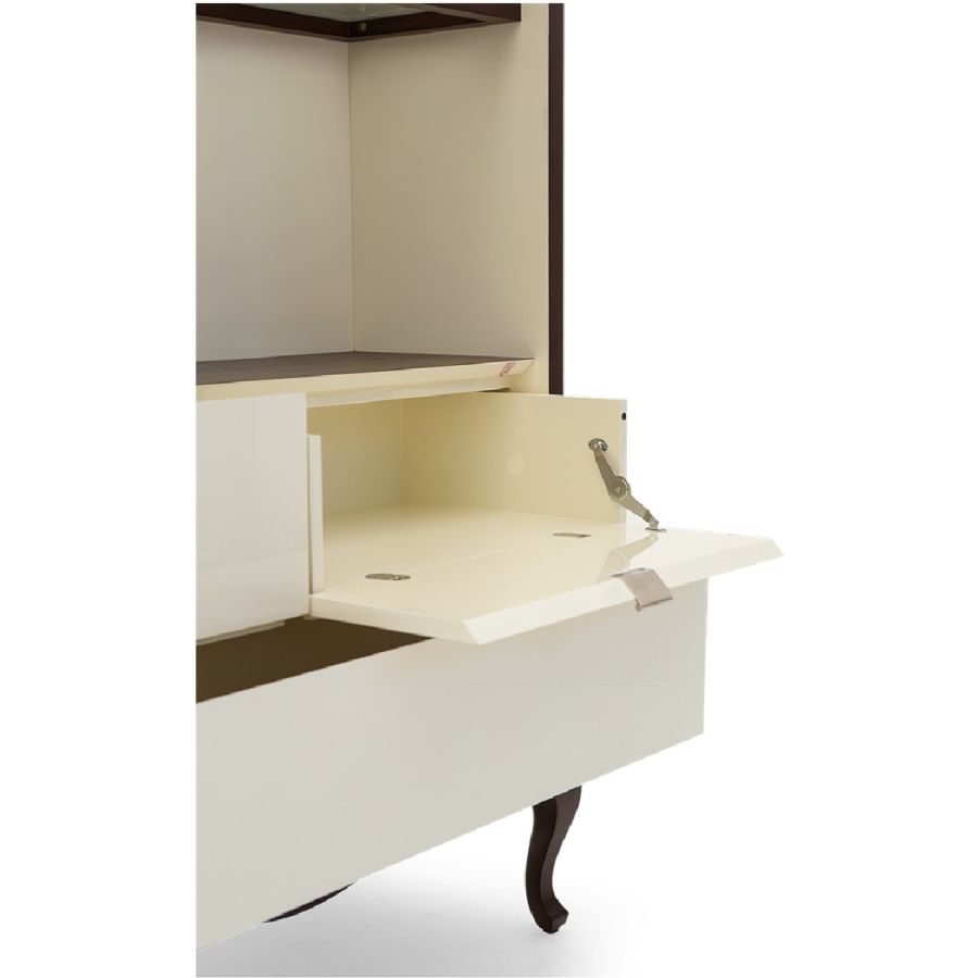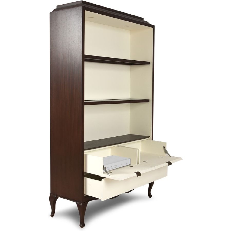 A truly delightful piece, ideal as a library or display cabinet. The shelves allow light from the flush mounted spots to shine through. The top drawers have a tilt opening that allows music systems to be concealed within.