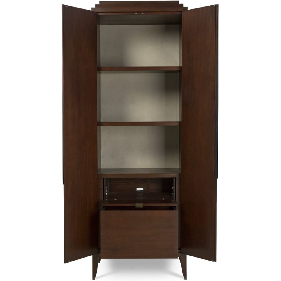 Certified Mahogany hardwood. Hand crafted by Master carvers. Single ultra-suede lined drawer with easy glide. Drop lid drawer for concealing home entertainment or storage. Front-door opening. Obtainable in an array of outstanding finishes. For residential use only. Commercial use is classified as Special Order Design (SOD), and alternative materials may be required. Contact us for details.
