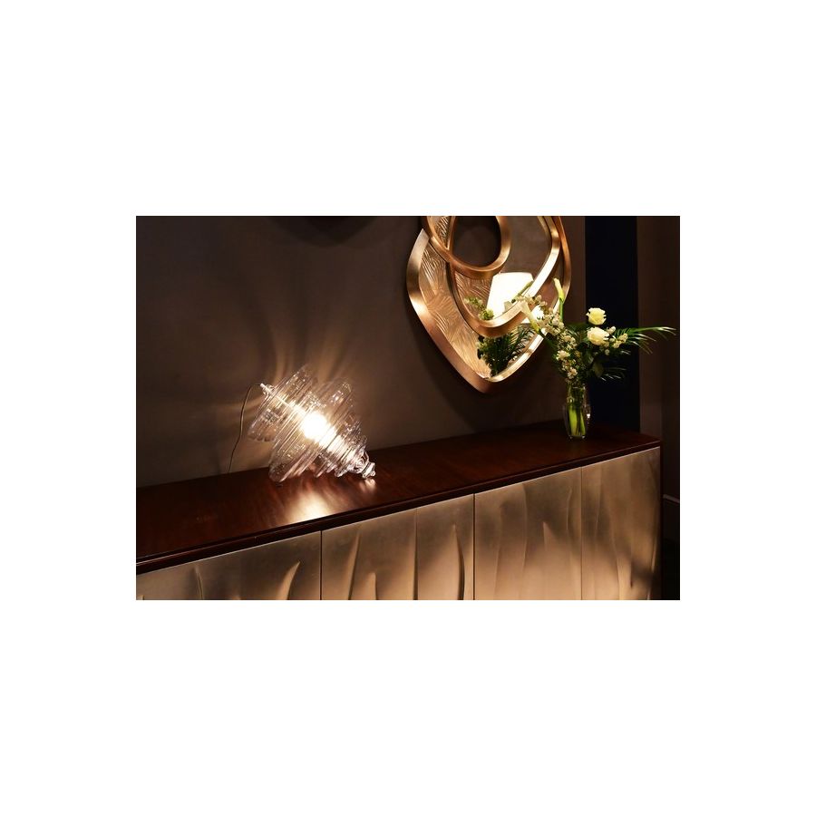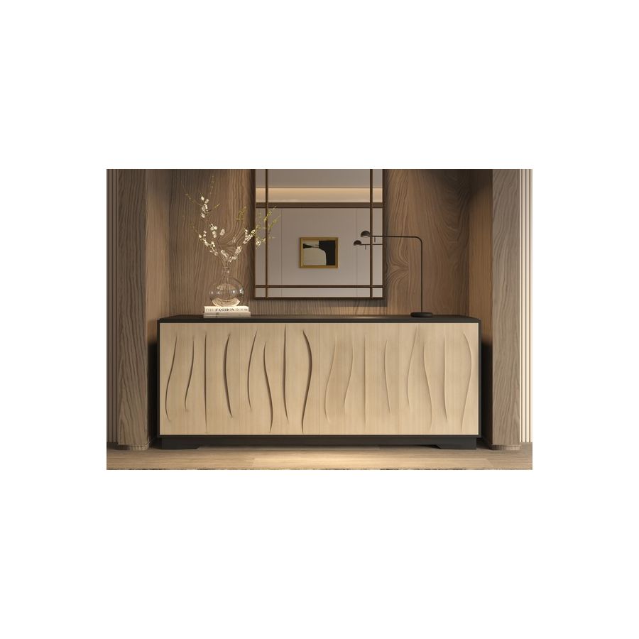 The stunning hand carved pattern on the front of this wood sideboard is inspired by the rippling dunes of a sand desert. Featuring 4 doors with hidden handles, 4 drawers and 8 shelves, it provides flexible and practical storage.