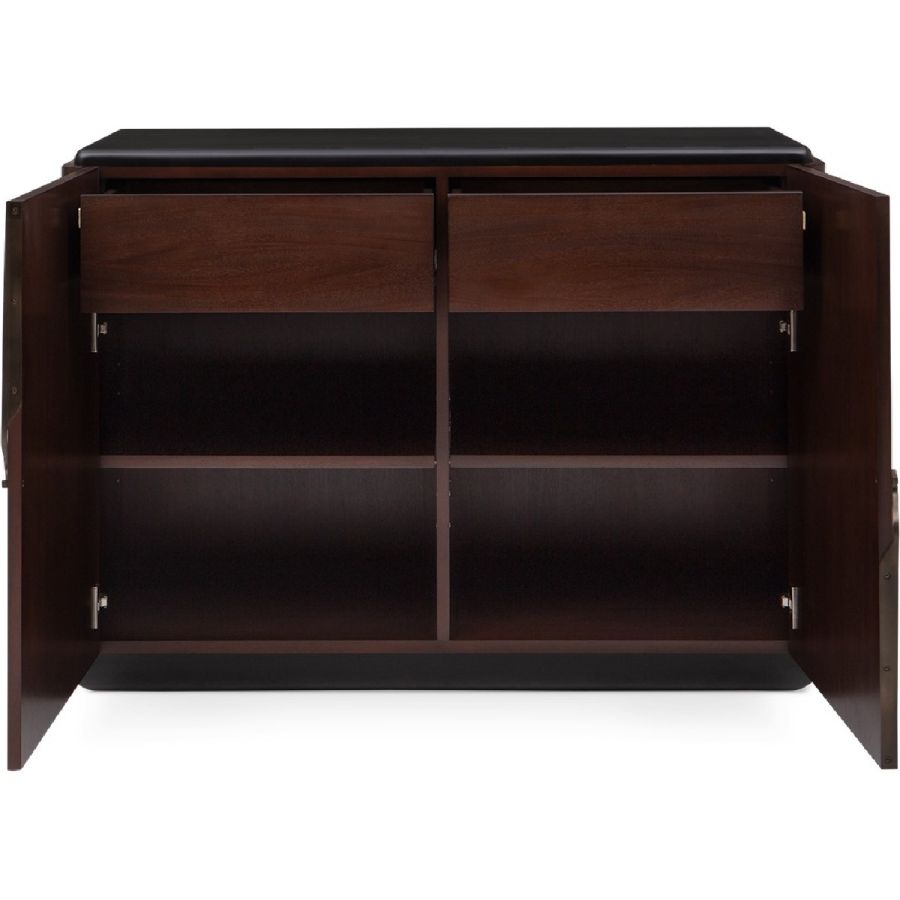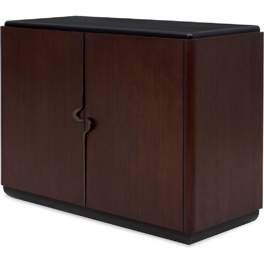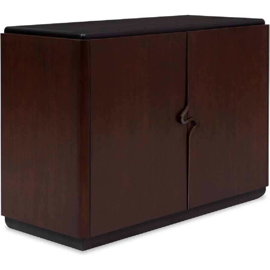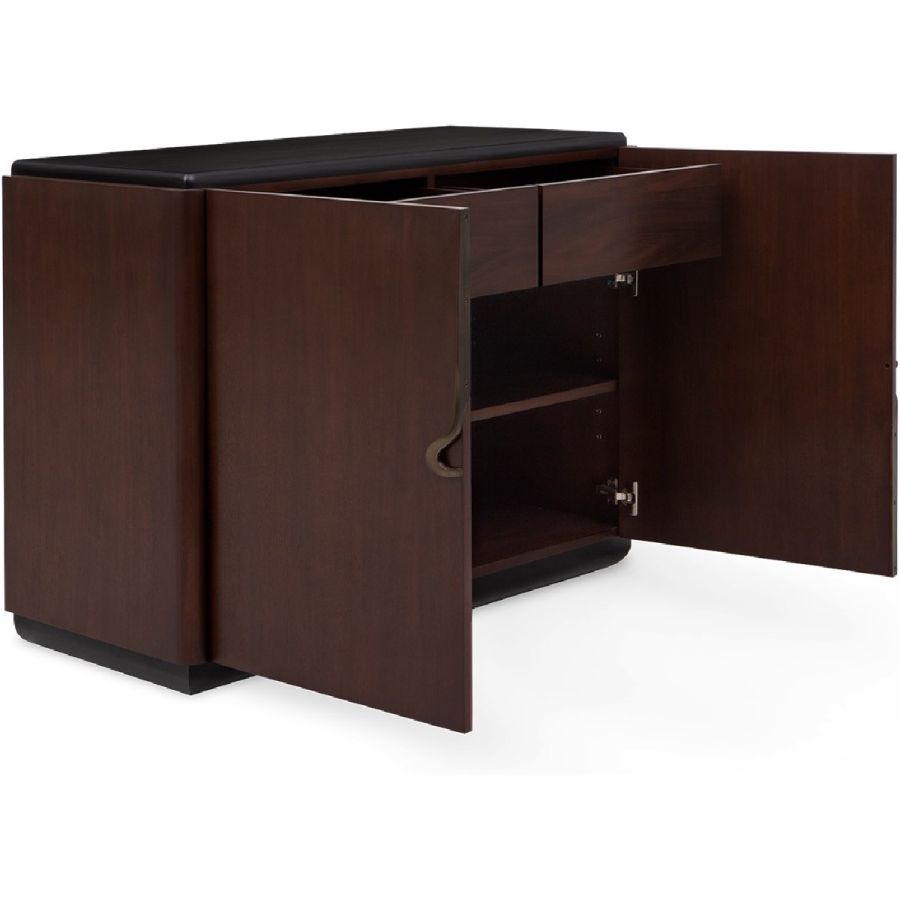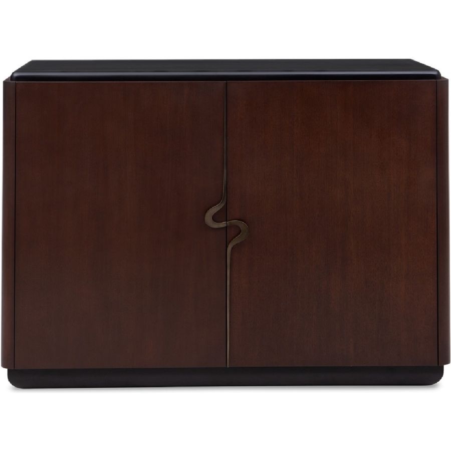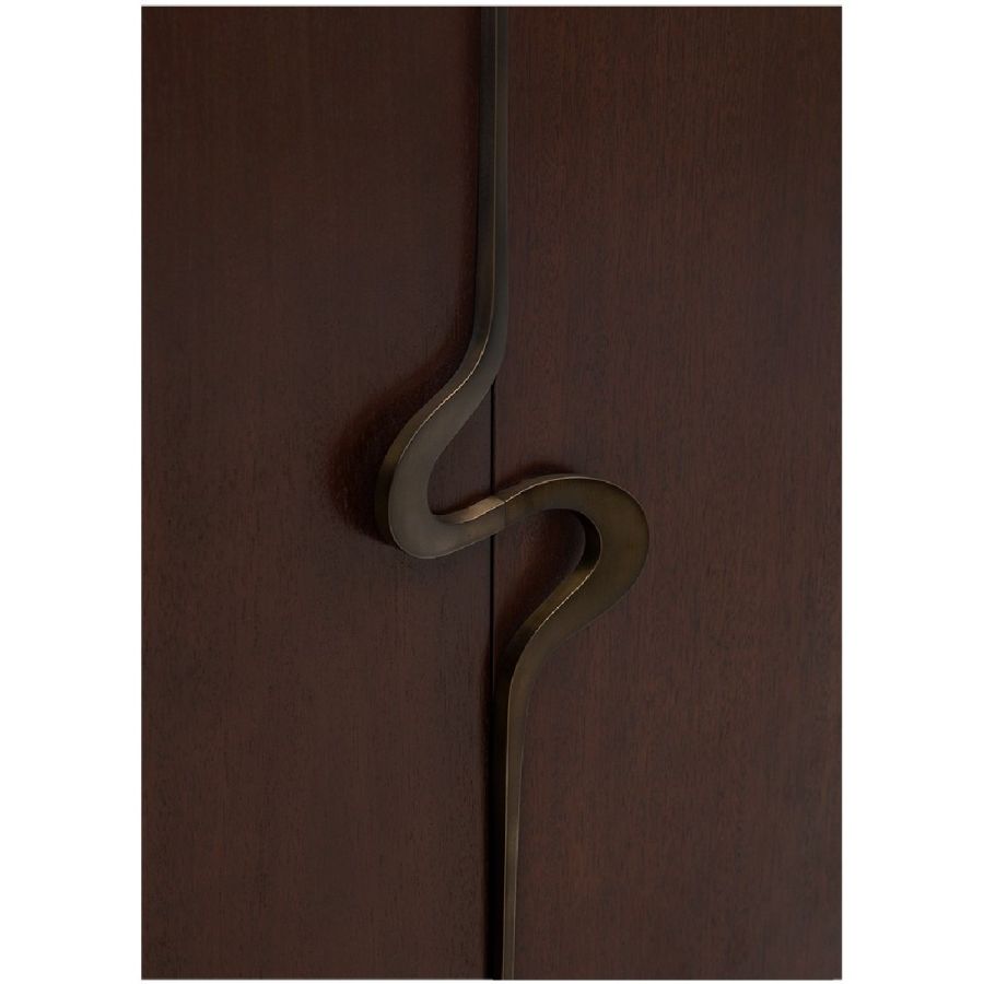 Embellished with a single open spiral curved brass handle, this exceptional cabinet is both practical and elegant. The two doors open to reveal two drawers and four storage compartments. A piece to grace interiors with classic, modern or contemporary décor. Also available as a nightstand (84-0064) and as a sideboard (85-0091).