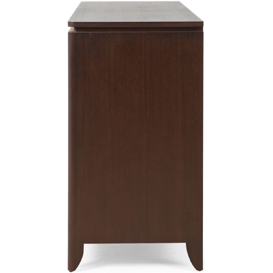 Certified Mahogany hardwood. Hand-Carved reliefs. Veneered Mahogany top. Double ultra-suede lined drawers with easy glide. Front-door opening. Selection of remarkable finishes are available. For residential use only. Commercial use is classified as Special Order Design (SOD), and alternative materials may be required. Contact us for details.