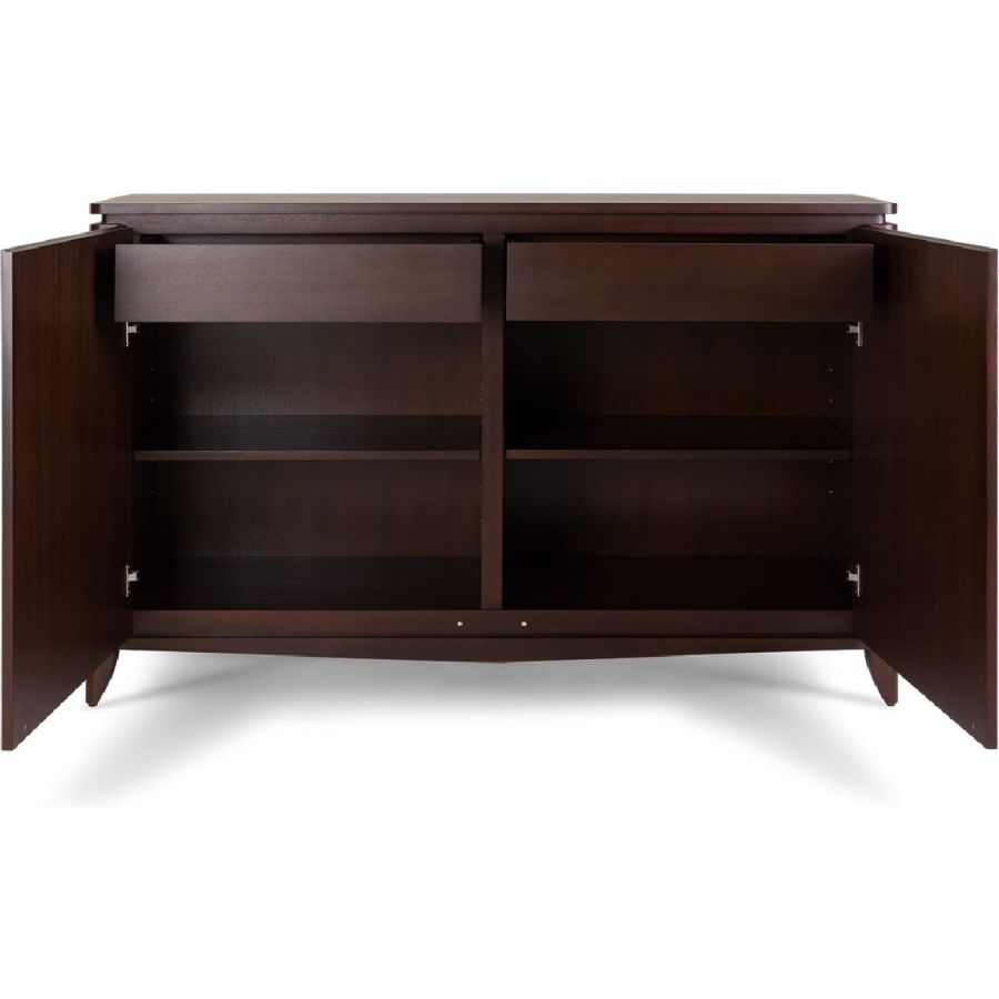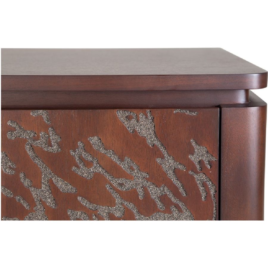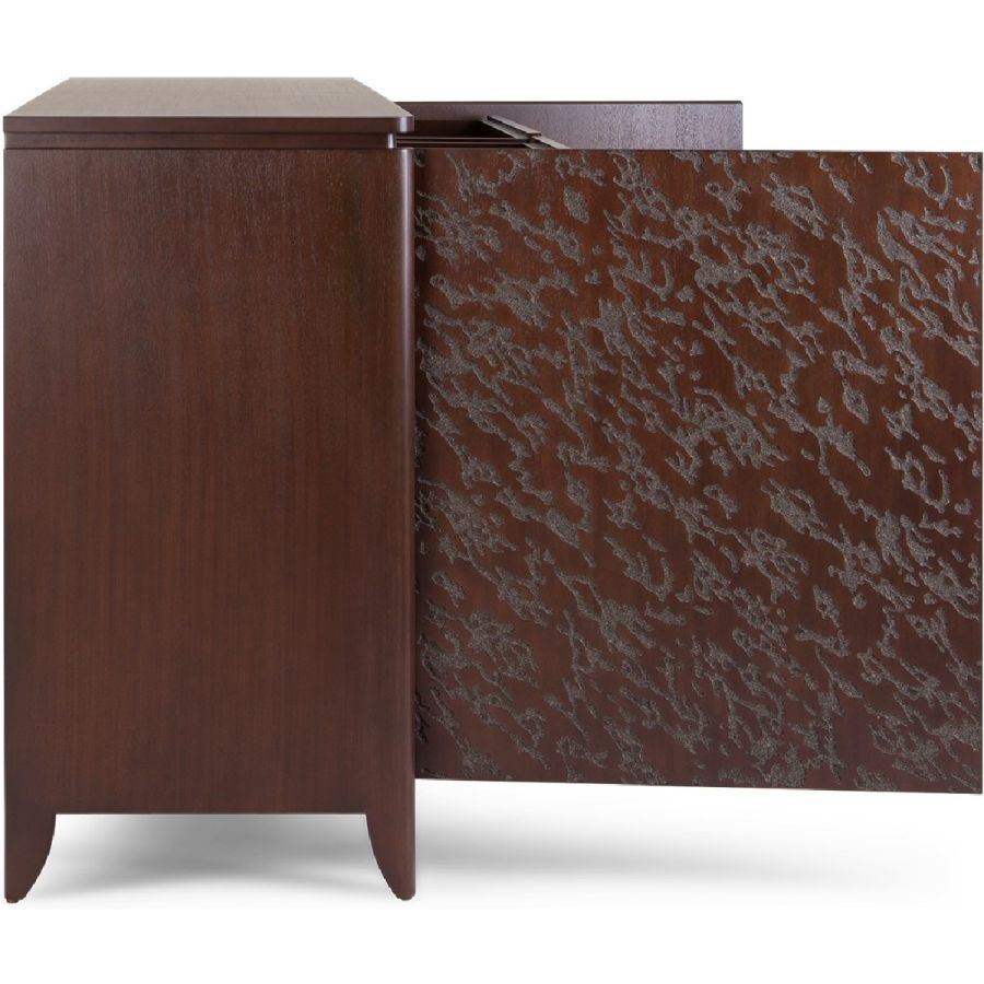 Certified Mahogany hardwood. Hand-Carved reliefs. Solid Mahogany and engineered wood construction. Veneered Mahogany top. Double ultra-suede lined drawers with easy glide. Front-door opening. For residential use only. Commercial use is classified as Special Order Design (SOD), and alternative materials may be required. Contact us for details.