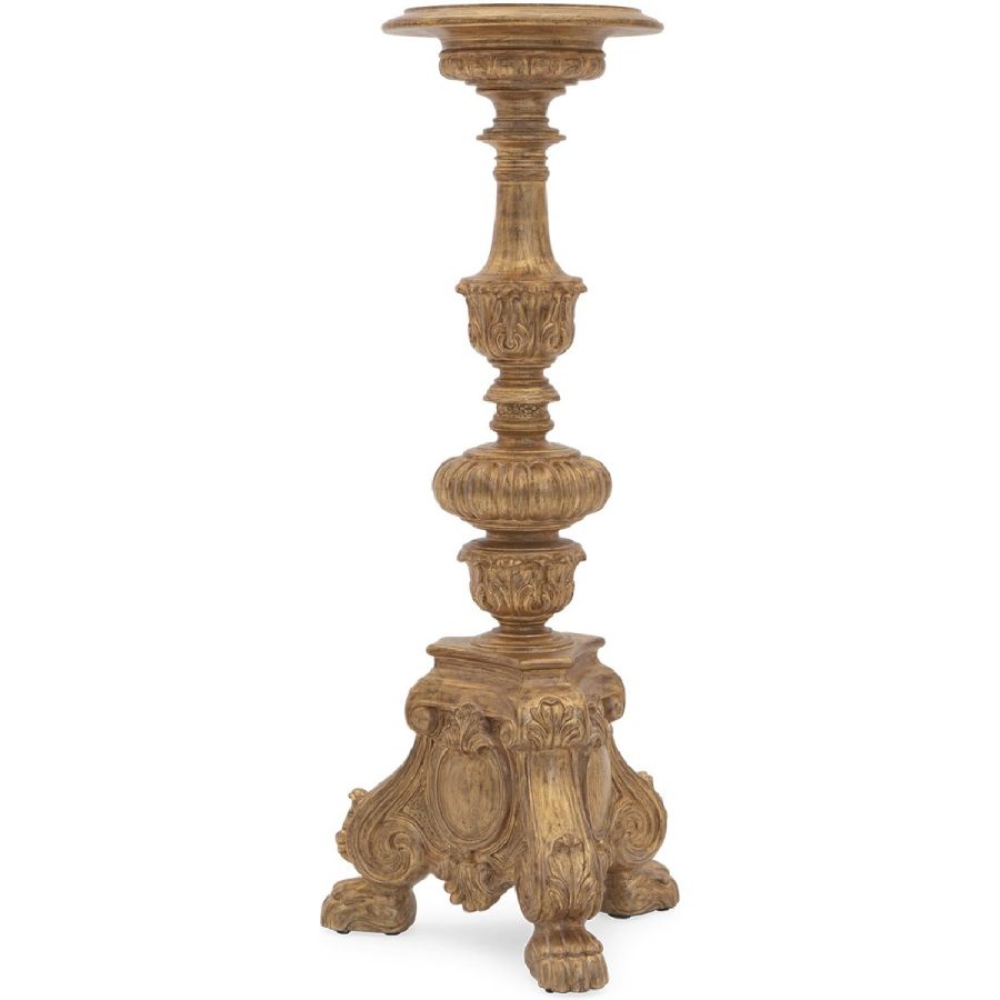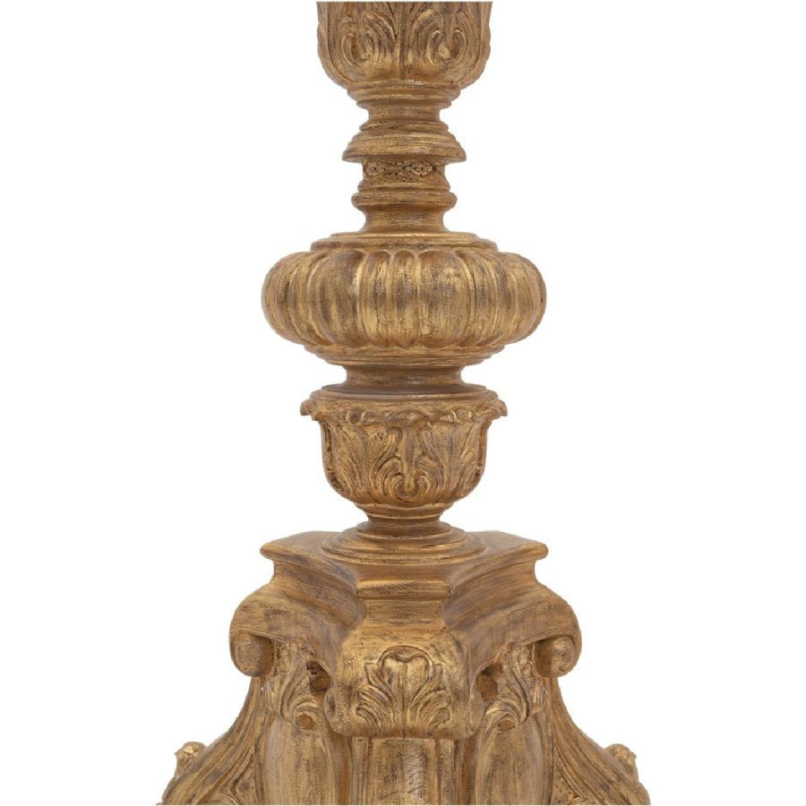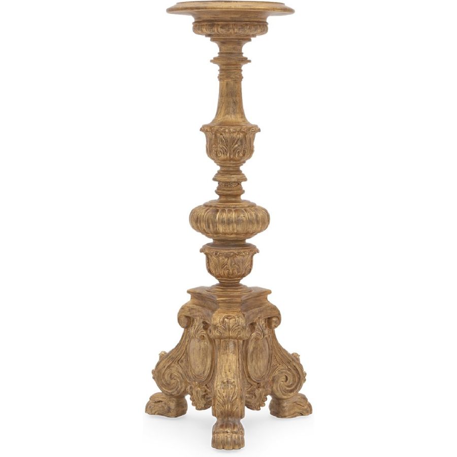 With lavish hand carving, this magnificent candlestick is one of a kind. Delivered pre-drilled for optional electrification.