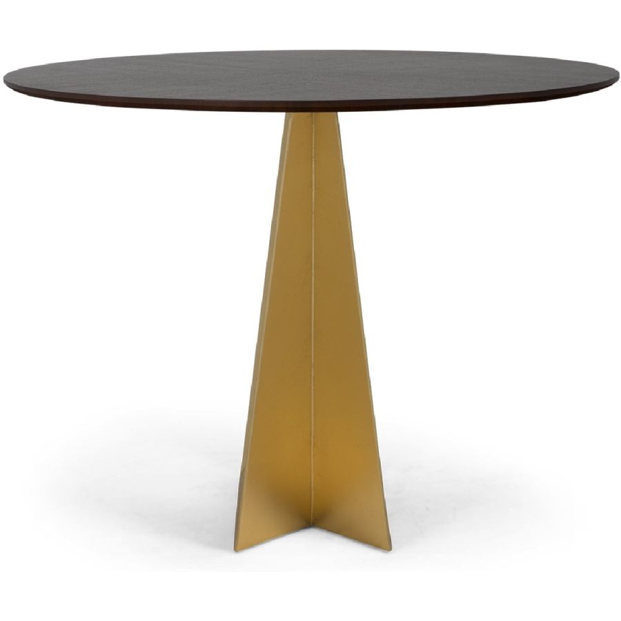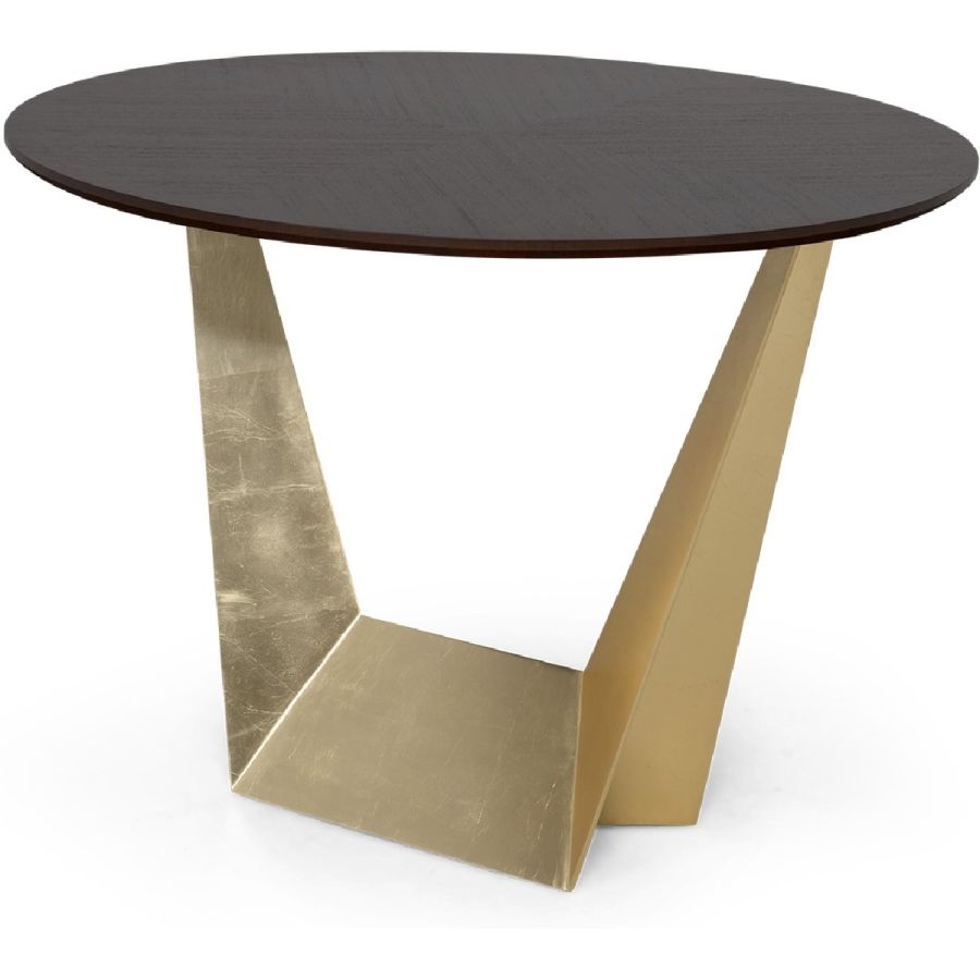 Architecturally inspired with a burnished winged geometric metal base and a round top, the stunning Calatrava table is ideal as a center, breakfast or small dining table.