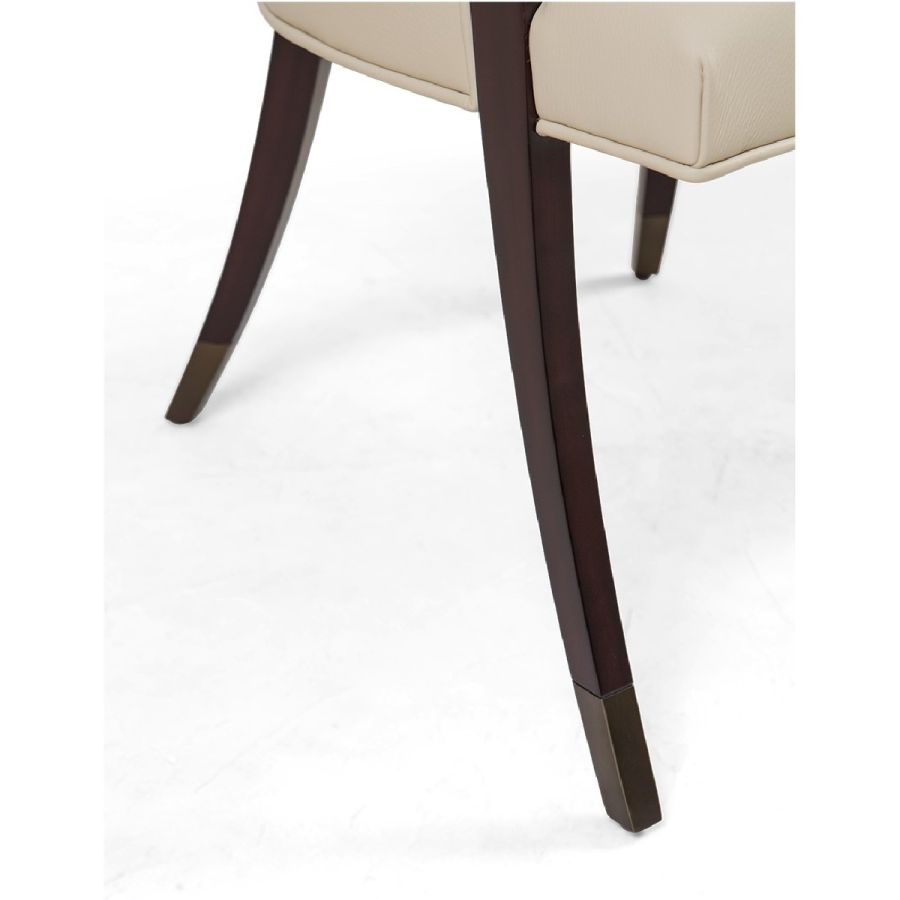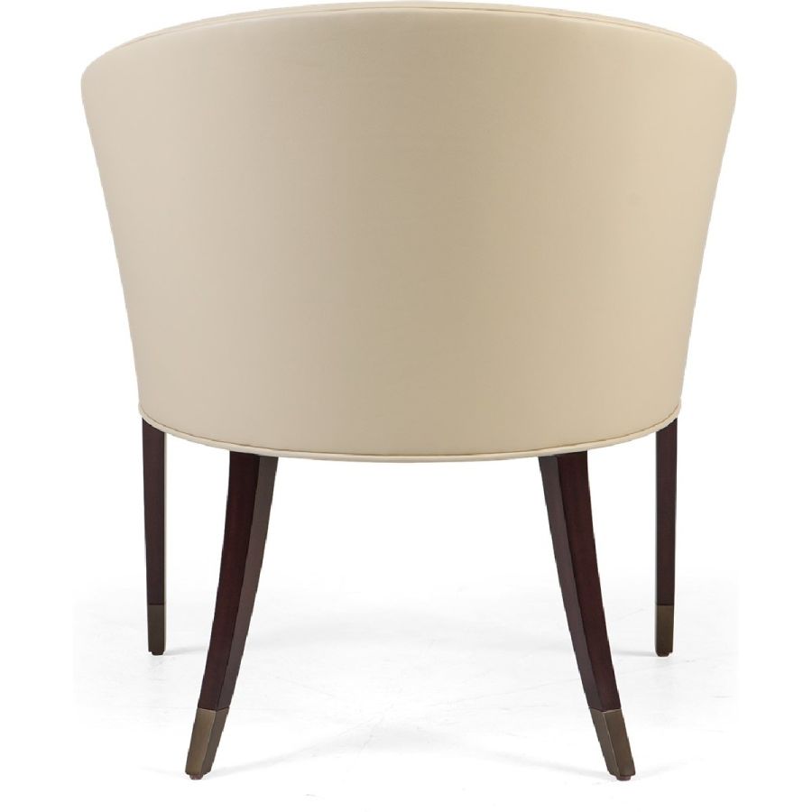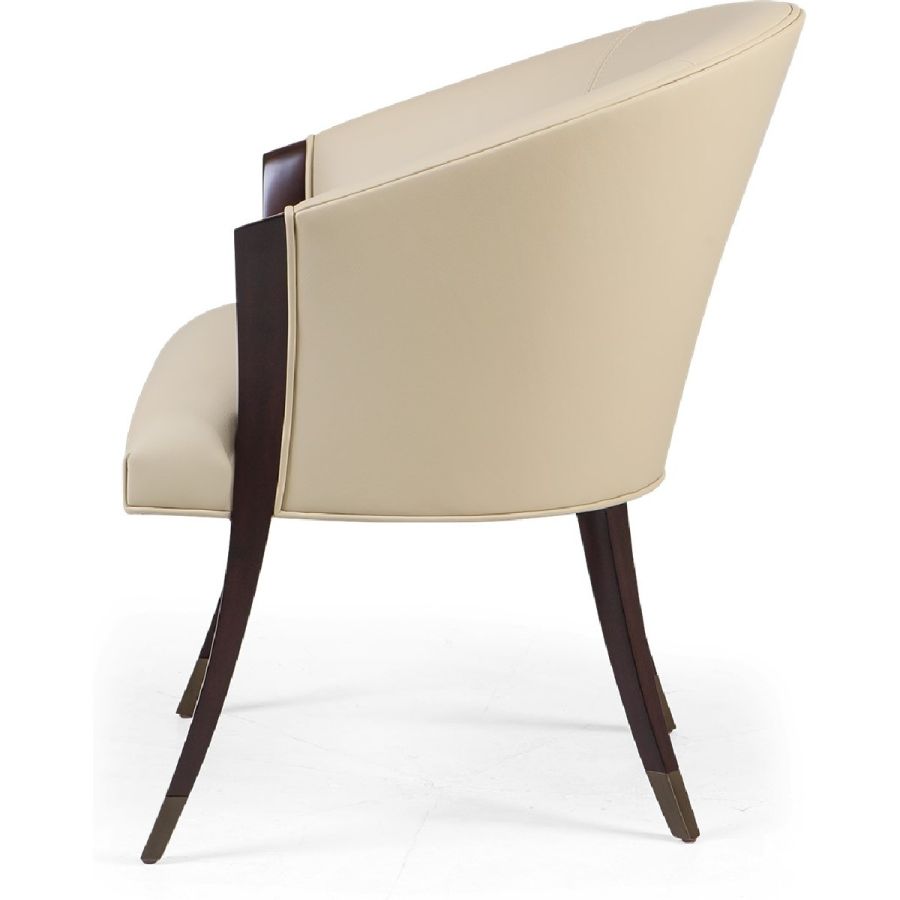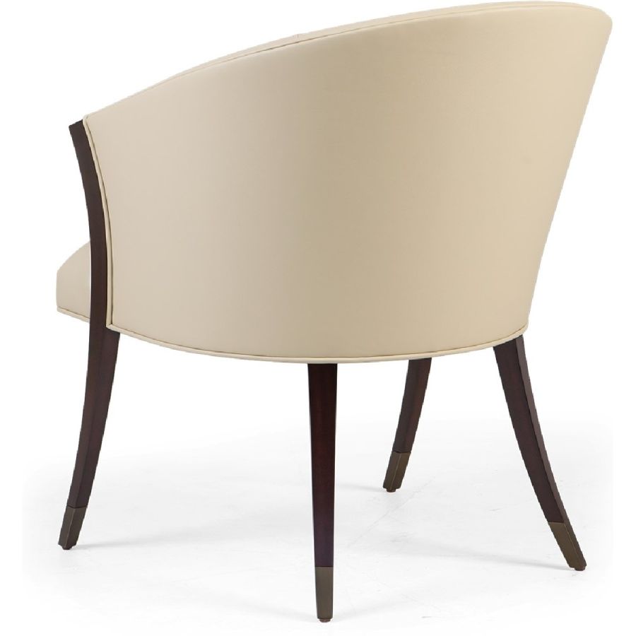 The most exquisite gently curving lines create the form of this circular seated dining chair with metal finish tipped legs, which is a masterpece viewed from any angle. Elegance epitomized!