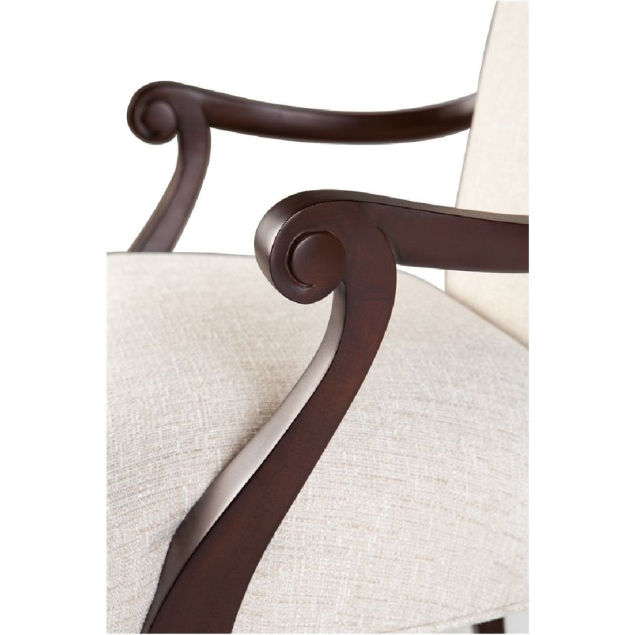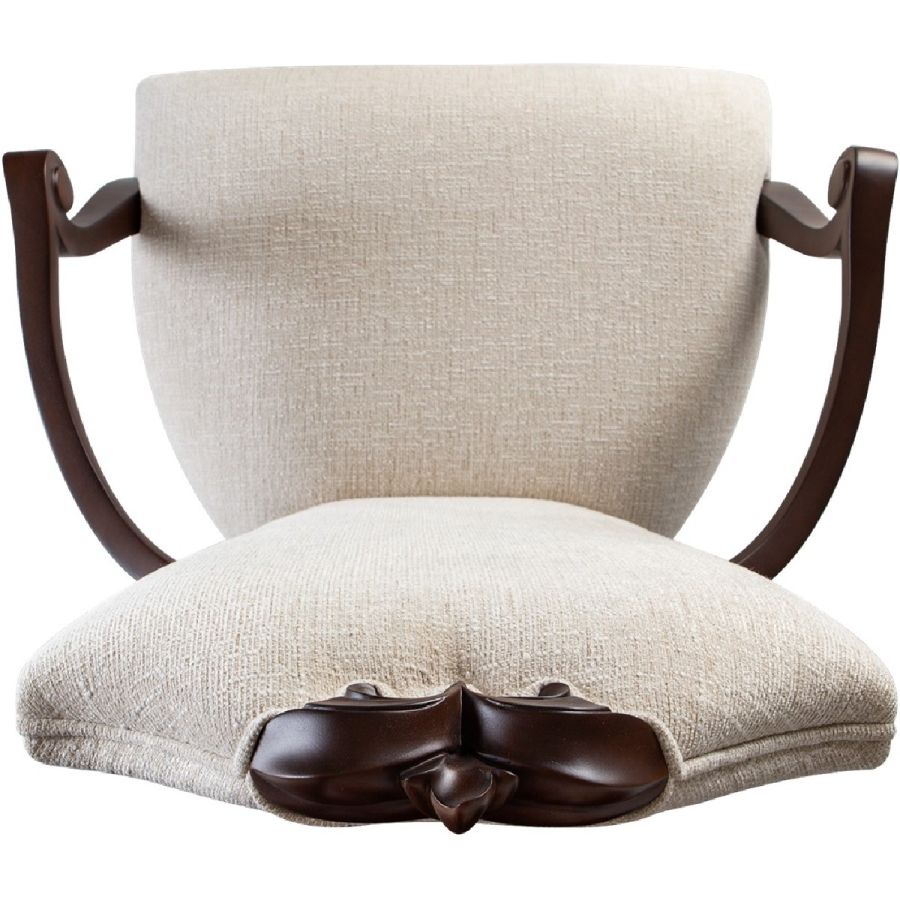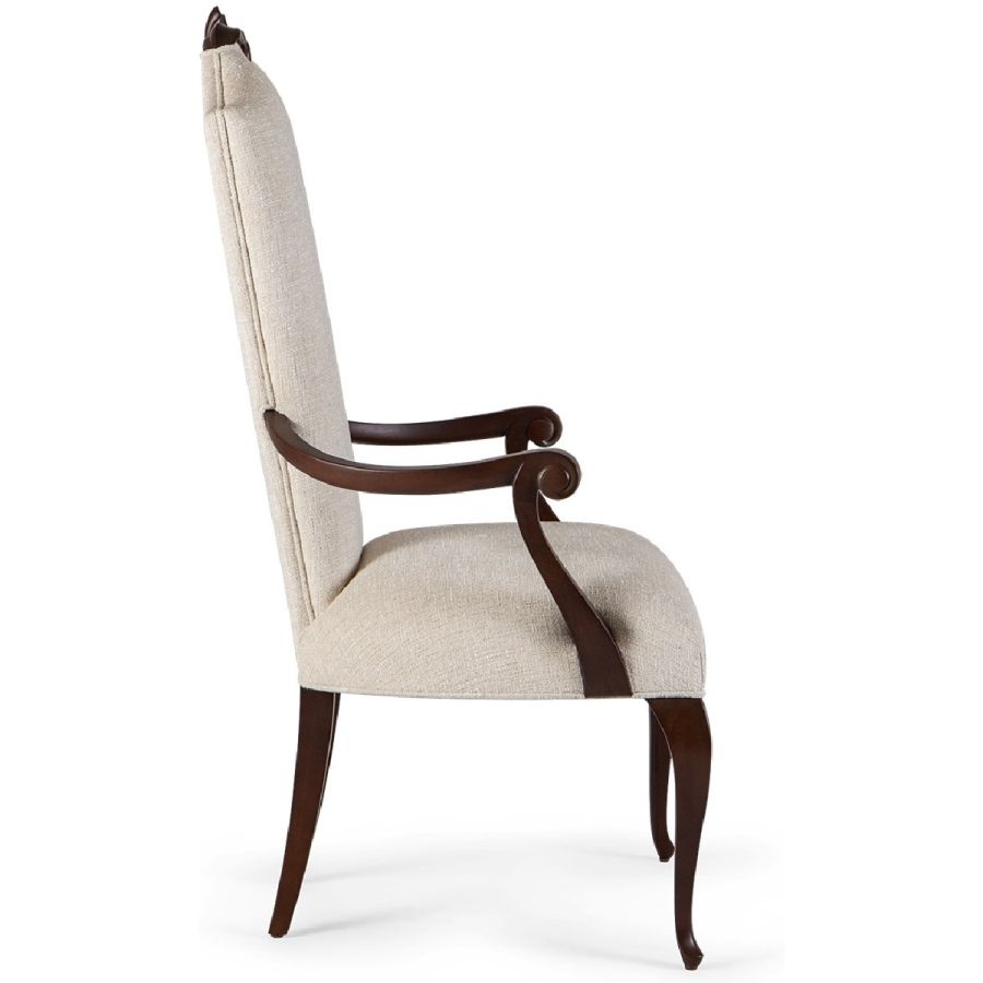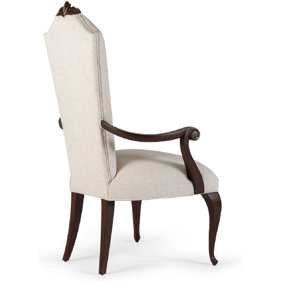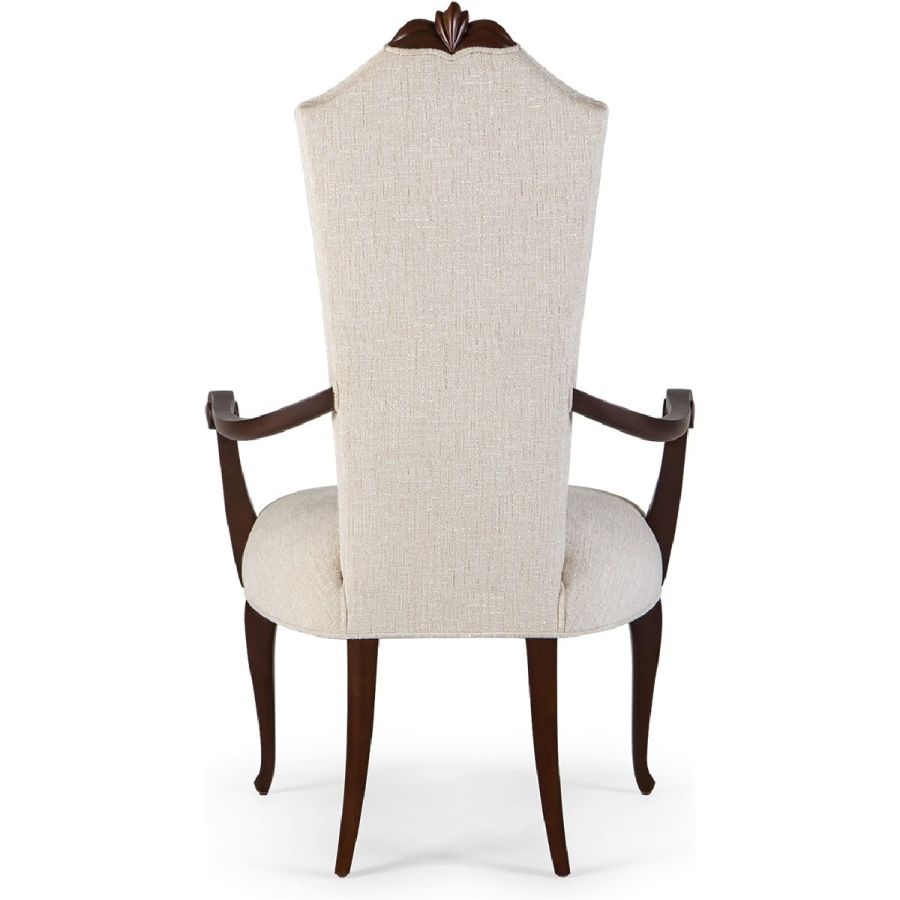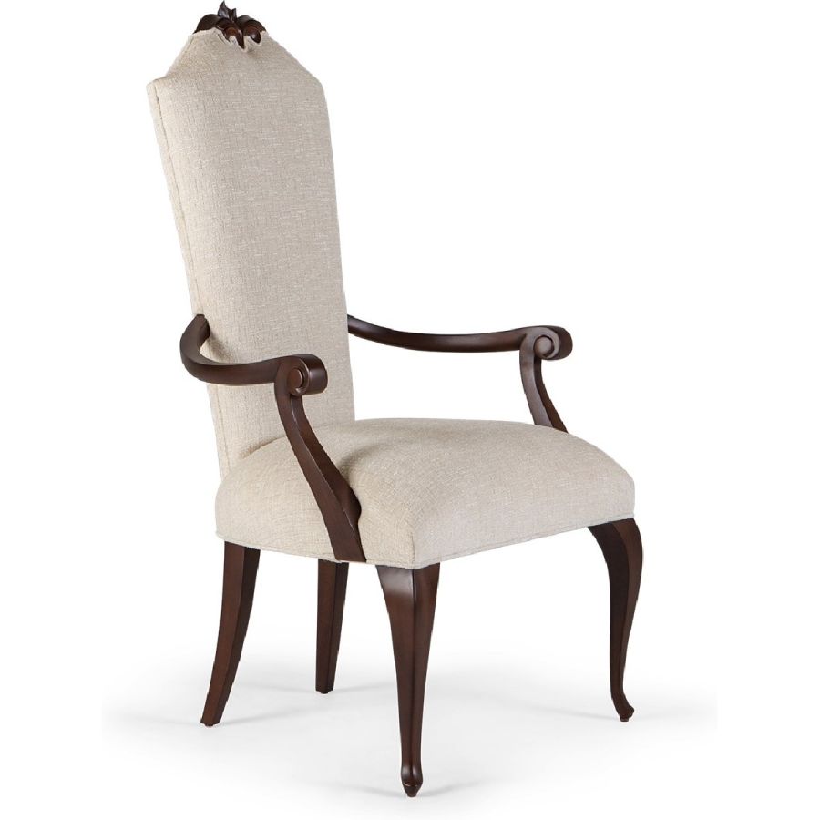 Fluid dining armchair lines with curvaceous cabriole legs and intricate hand carved details; a definitive visual statement with a CG twist. Also available without arms (30-0003).