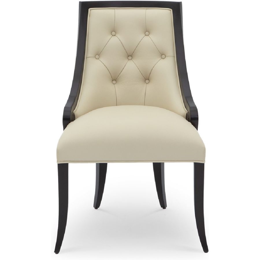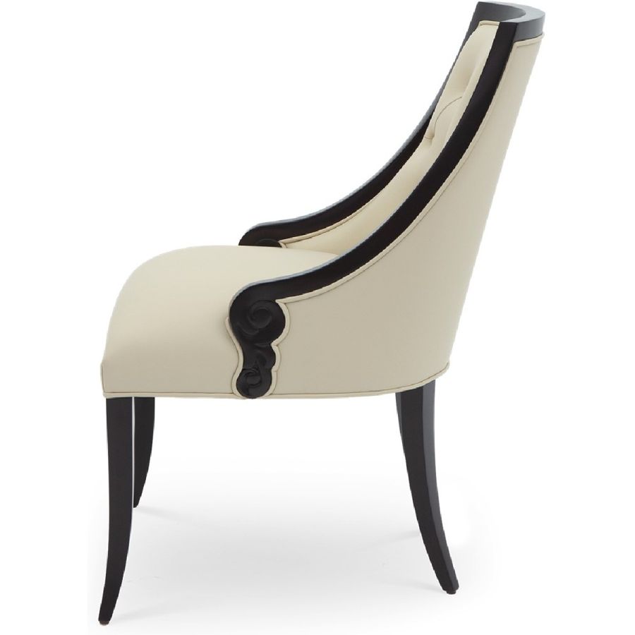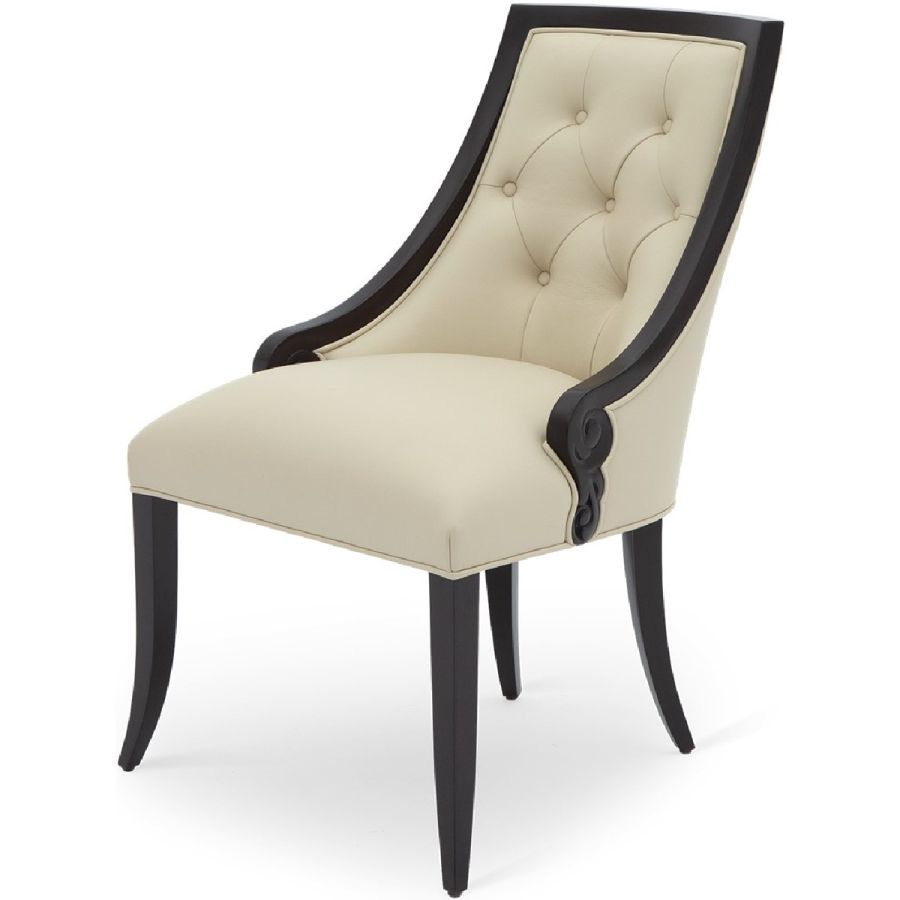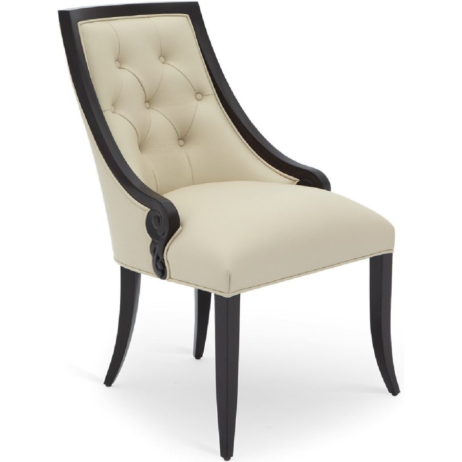 A shallow tub back with sumptuous tufting and flowing saber legs contribute to the fabulous styling of this Christopher Guy modern classic.