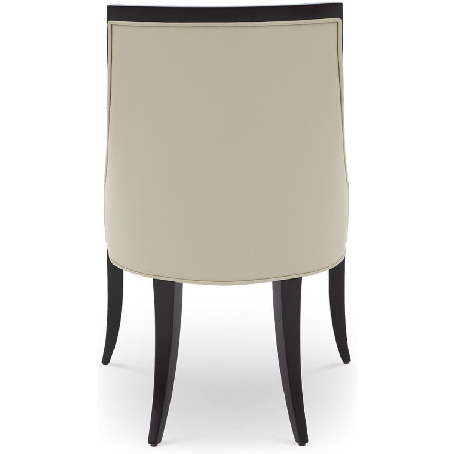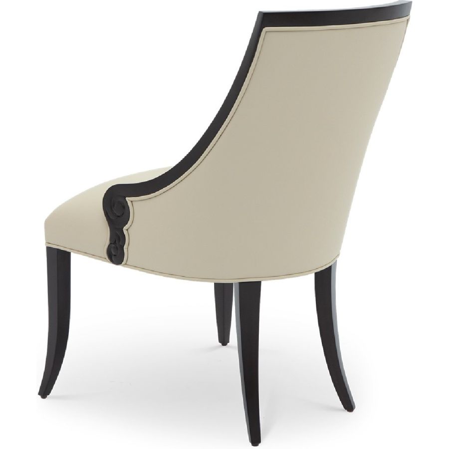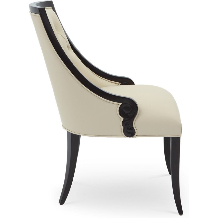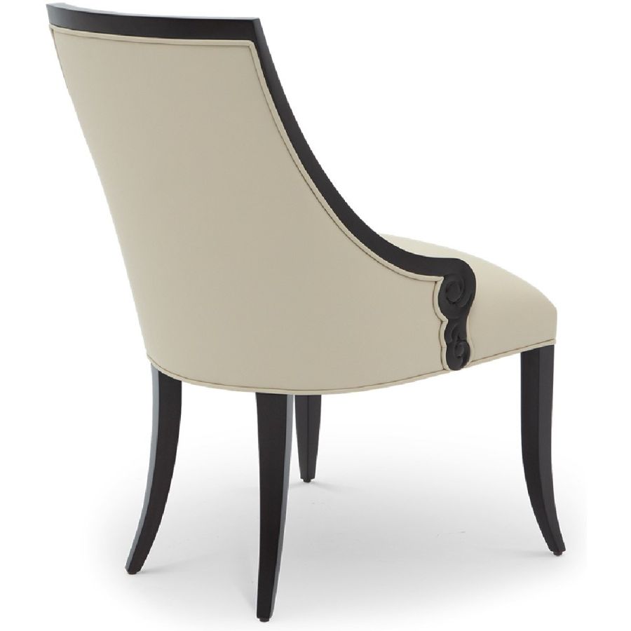 A shallow tub back with sumptuous tufting and flowing saber legs contribute to the fabulous styling of this Christopher Guy modern classic.