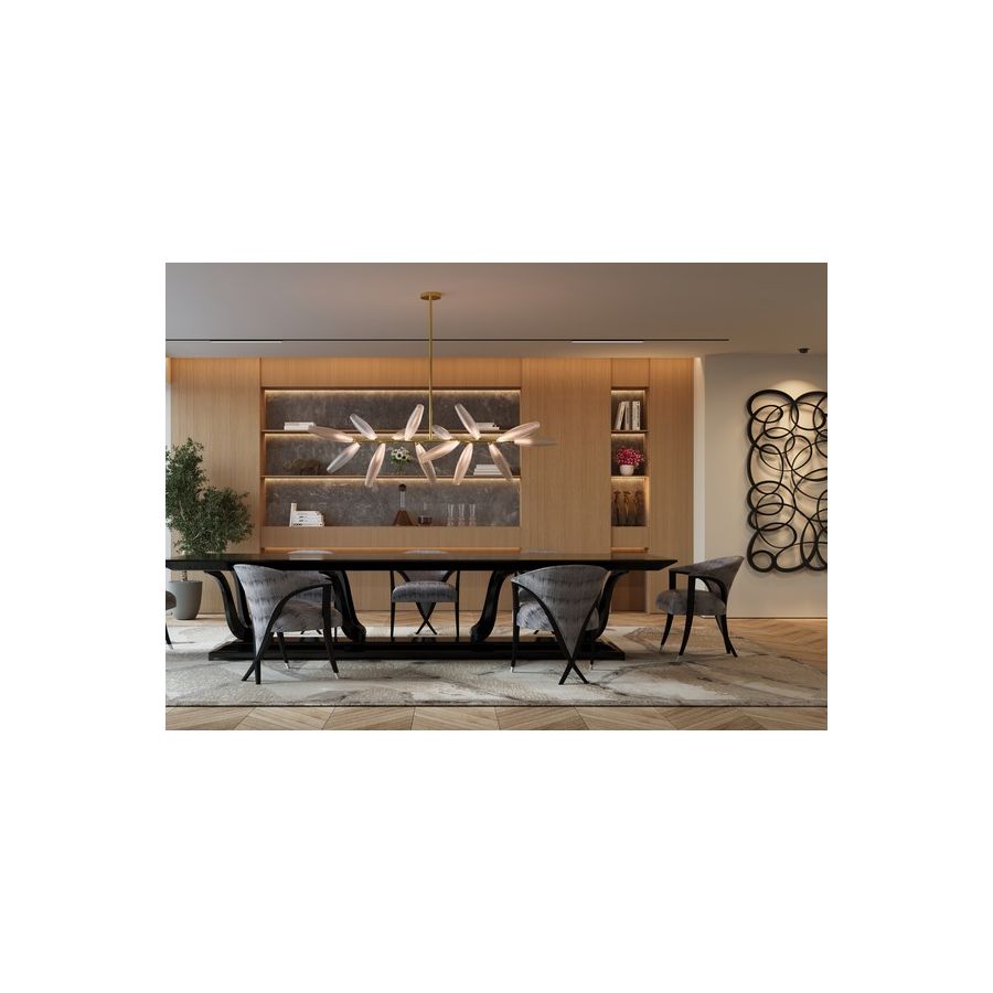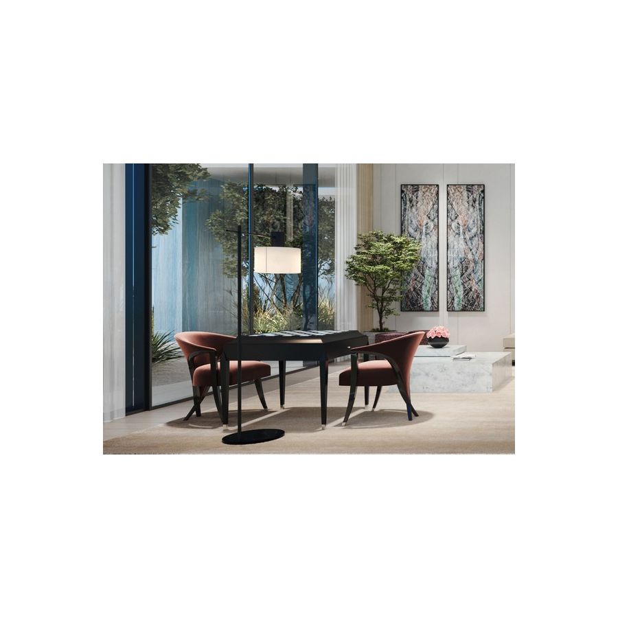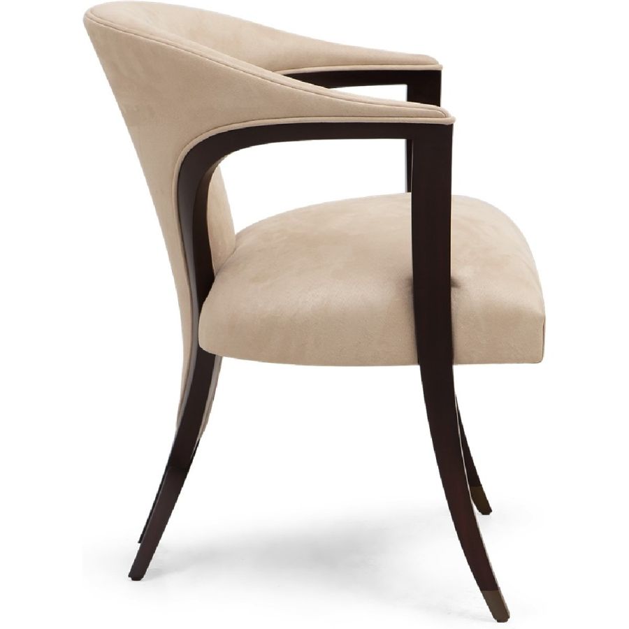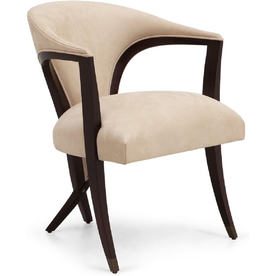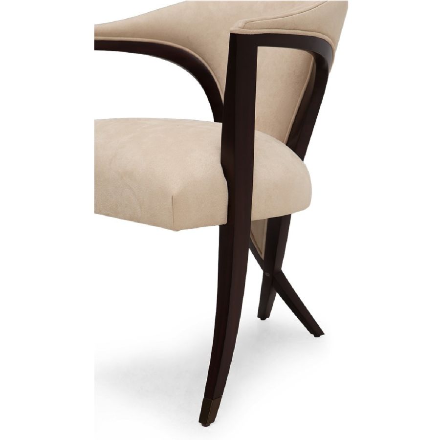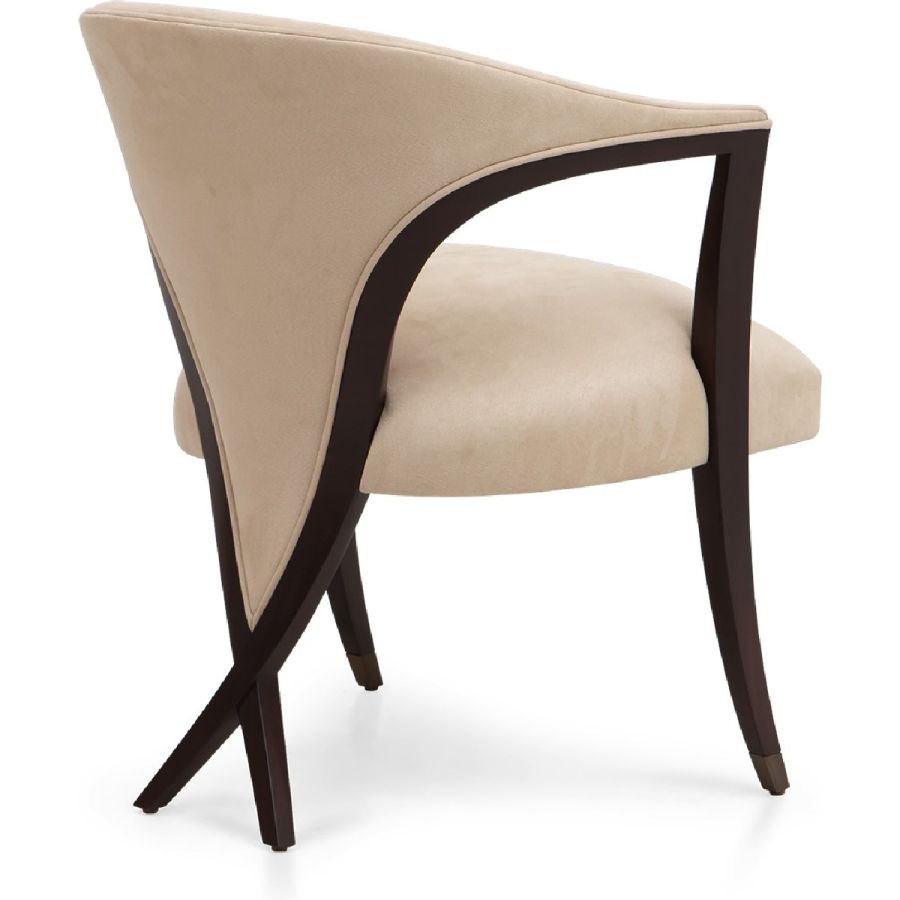 An extraordinary dining chair and occasional chair, complete with a sweeping low backrest that incorporates Christopher’s signature Chris-Cross and metal finish tipped legs. Simply magnificent.
