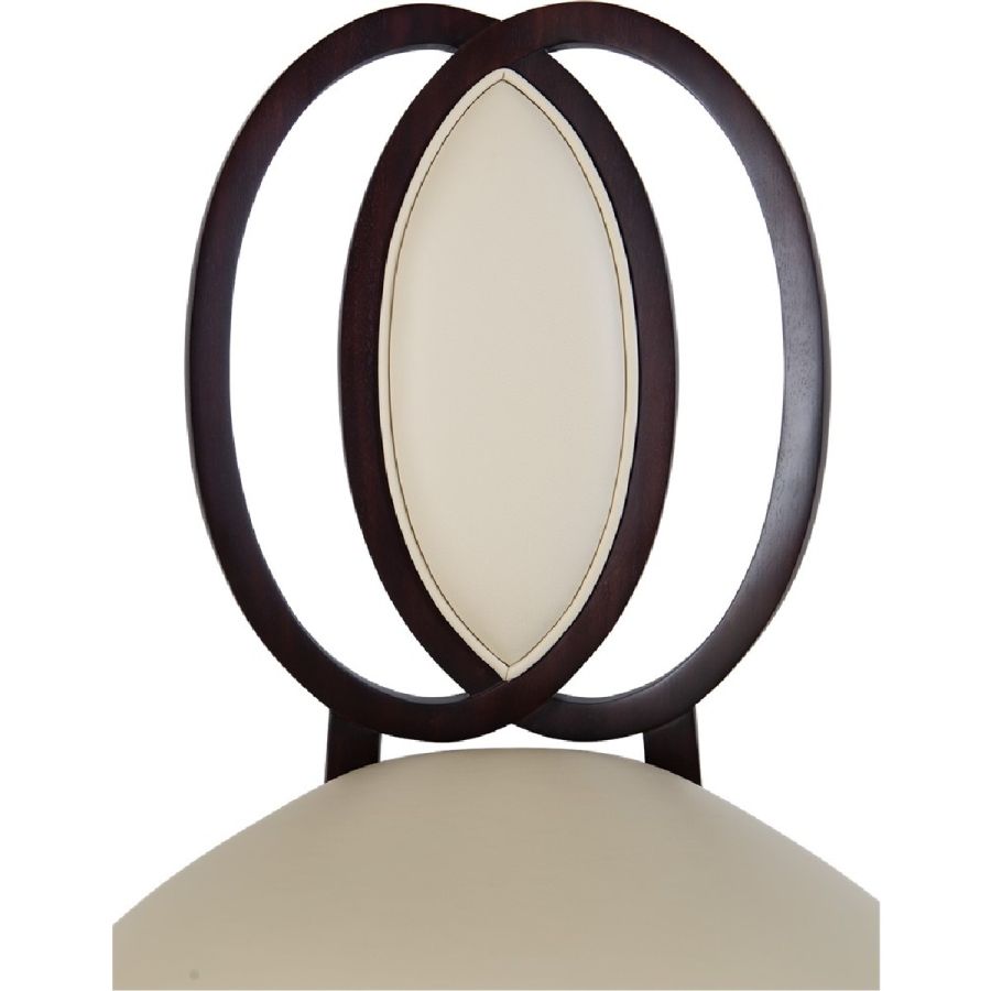 With a clever double oval upholstered back inset, and a slightly curved sabre front leg style, this is a beautifully proportioned and unusual dining chair.