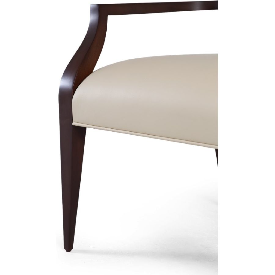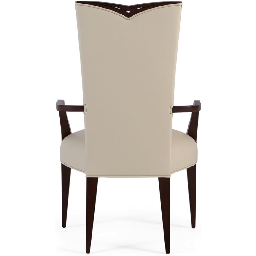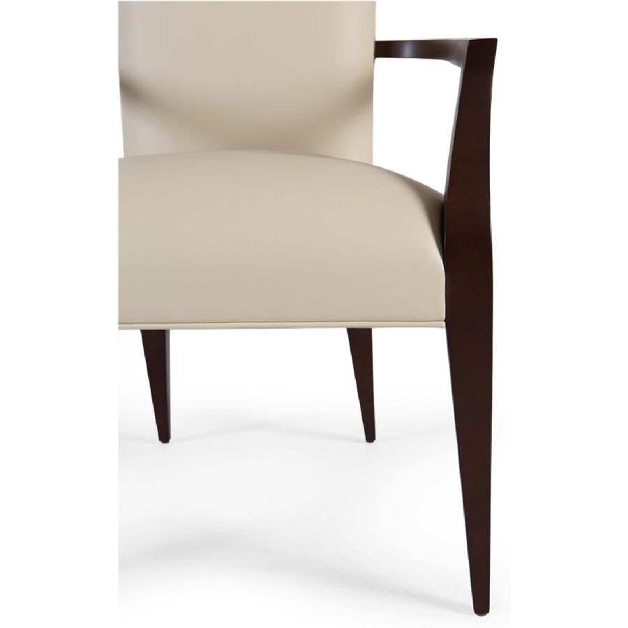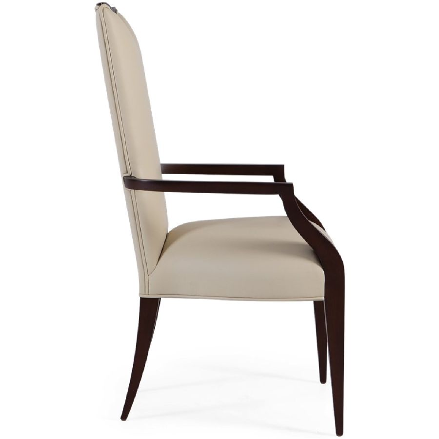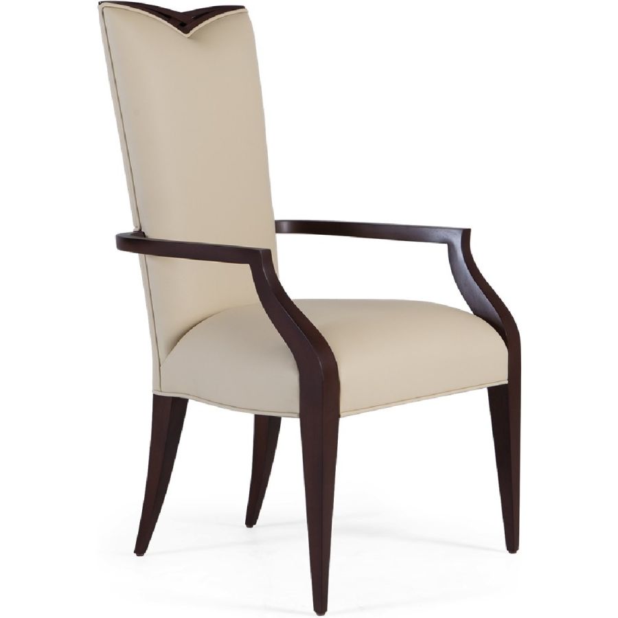Striking sabre leg dining chair with downswept arm supports and hand carved keyhole detailing; a contemporary design with timeless values. Also available without arms: 30-0136