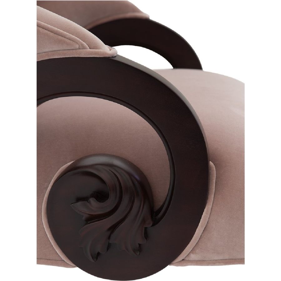 Doweled mortise and tenon frame in solid Mahogany from certified source. Sculptured by our Master-Carvers. Sag free Sinuous springs. Diamond shaped tufting in a buttoned formation. Available in a selection of finishes. For residential use only. Commercial use is classified as Special Order Design (SOD), and alternative materials may be required. Contact us for details.