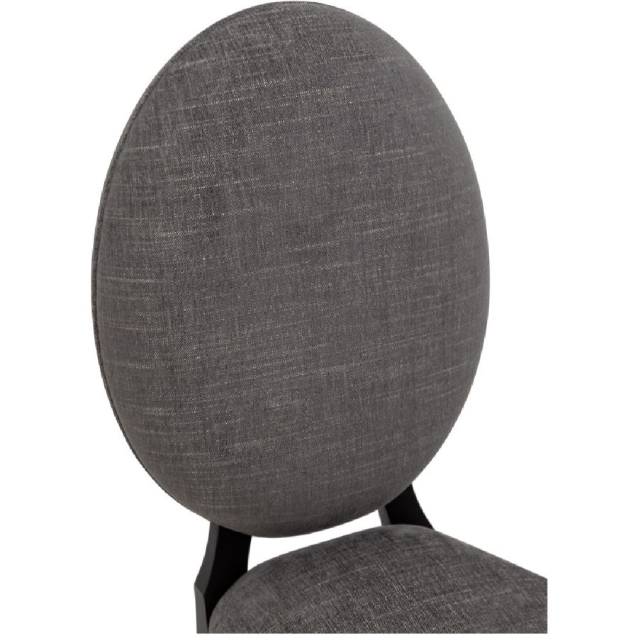 A beautifully simple, classic upholstered chair featuring elegant tapering hand carved solid wood legs and an oval back. The perfect piece for any style of dining setting.