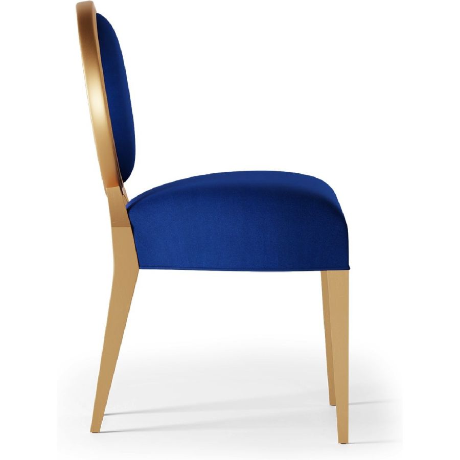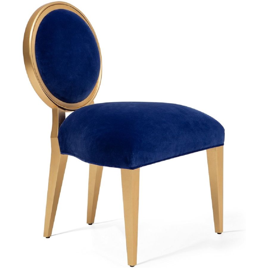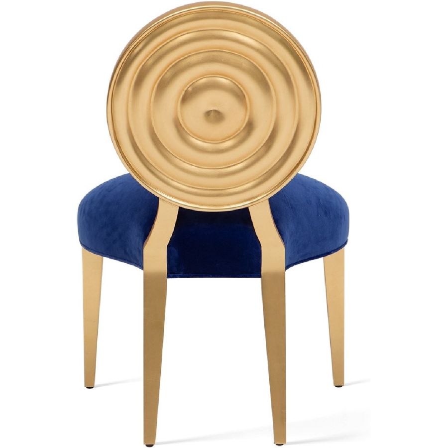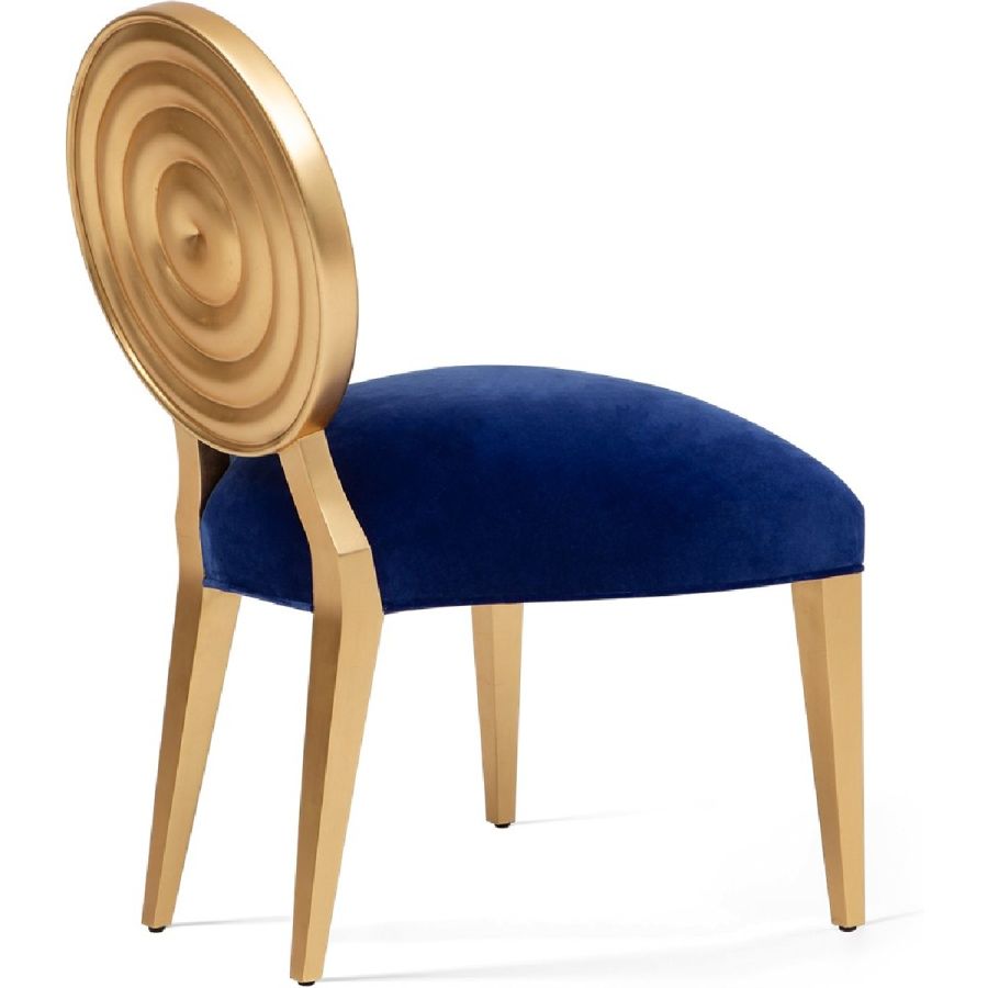Named after the artist famous for painting concentric circles, this delightful dining chair features a round upholstered backrest with the rear exquisitely hand carved into circles. The back is supported on pivoted, slanting straight legs for an elegant profile.