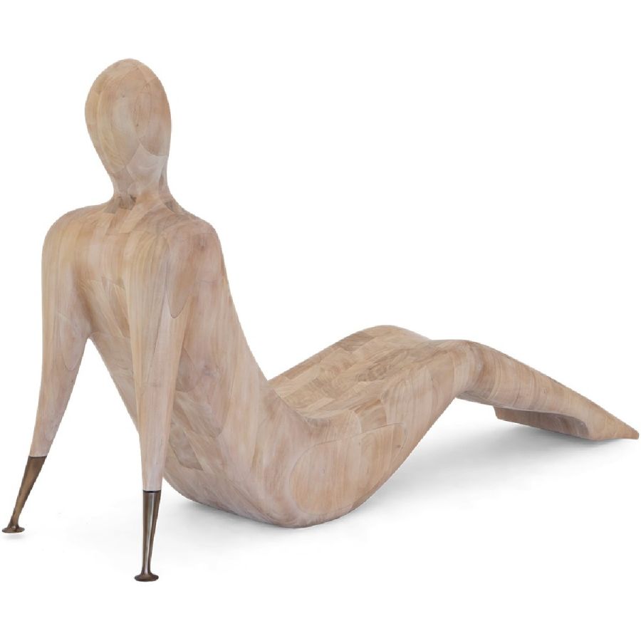The ergonomically perfect hard-carved wooden chaise with brass arms, individually welded to form a seamlessly piece of unprecedented beauty and value.