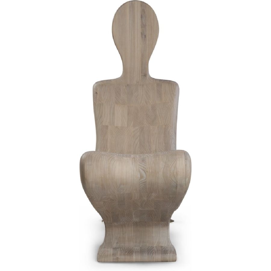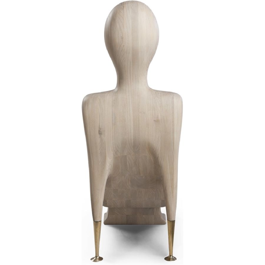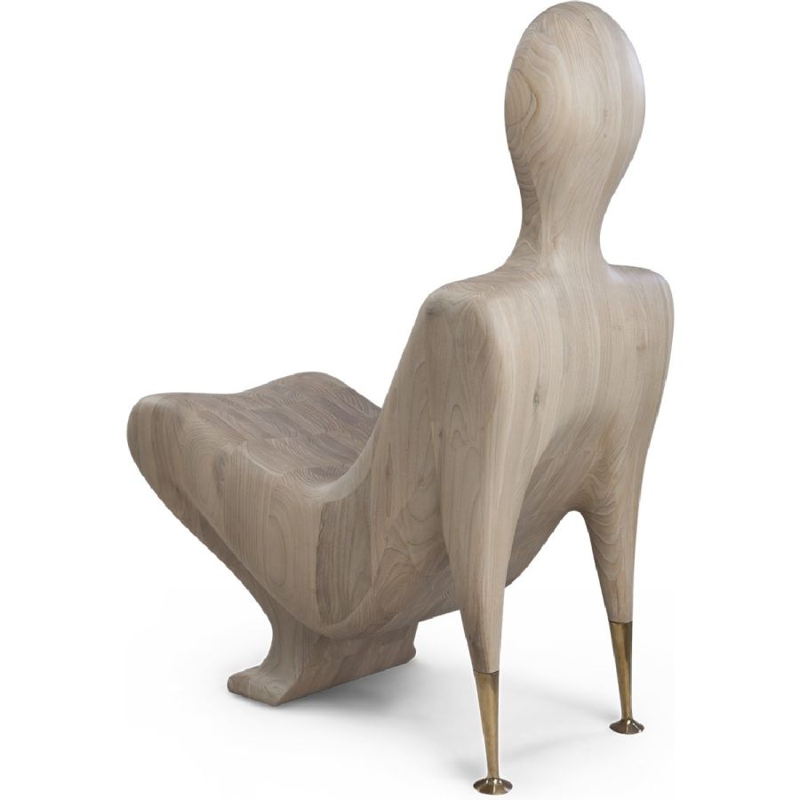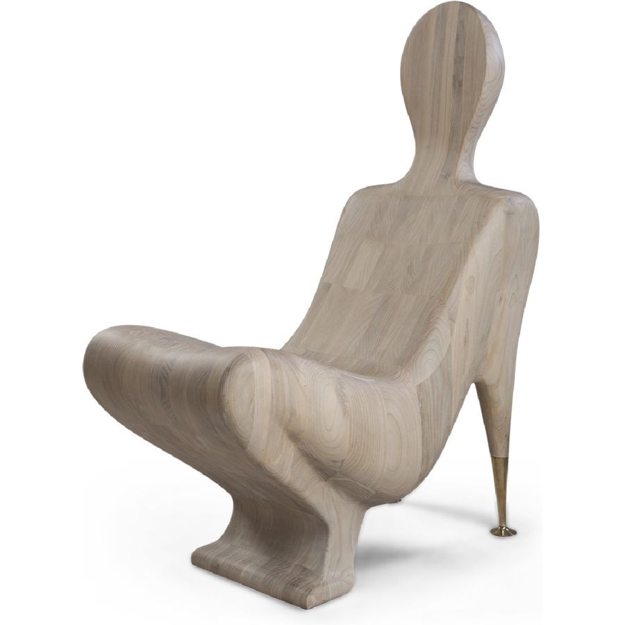 A natural wood figure transformed into a surprisingly comfortable modernist accent chair, beautifully hand carved with subtle brass arms. Art has never been this practical.