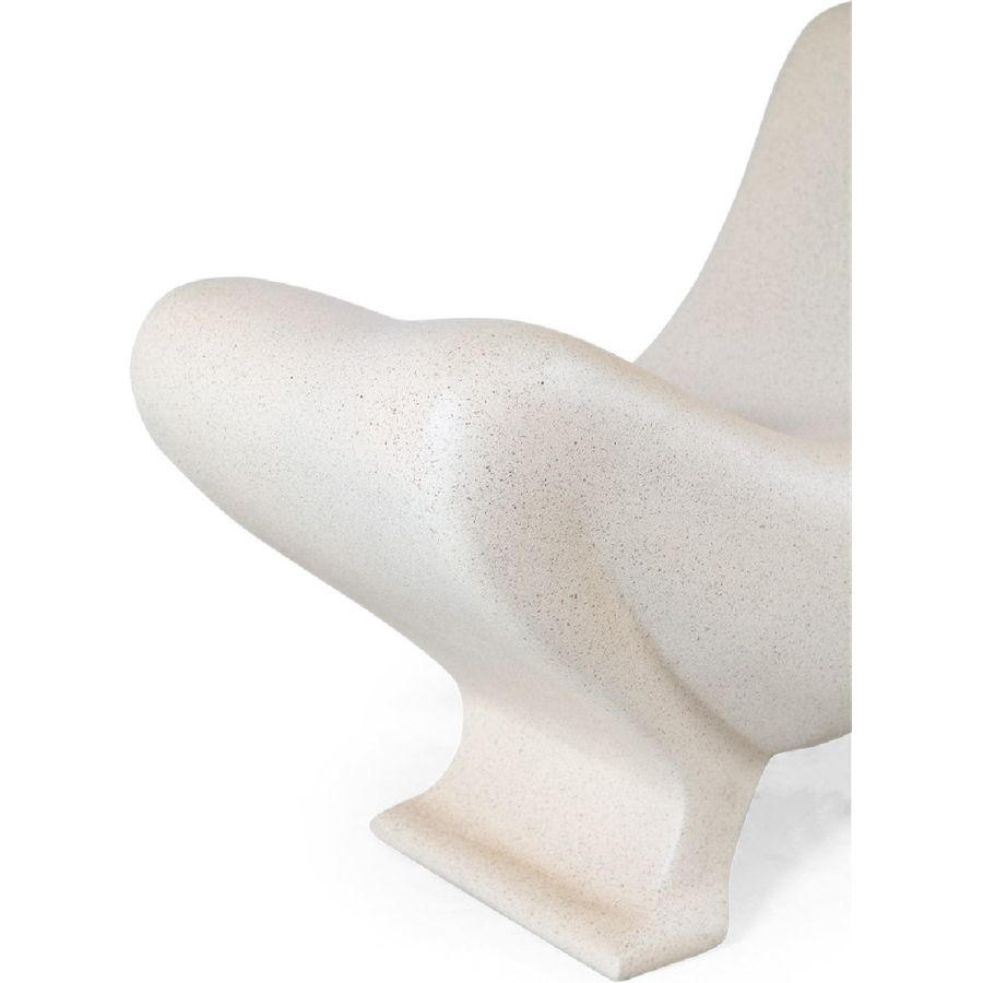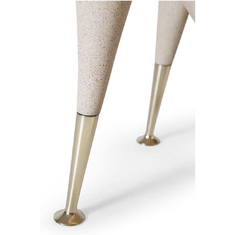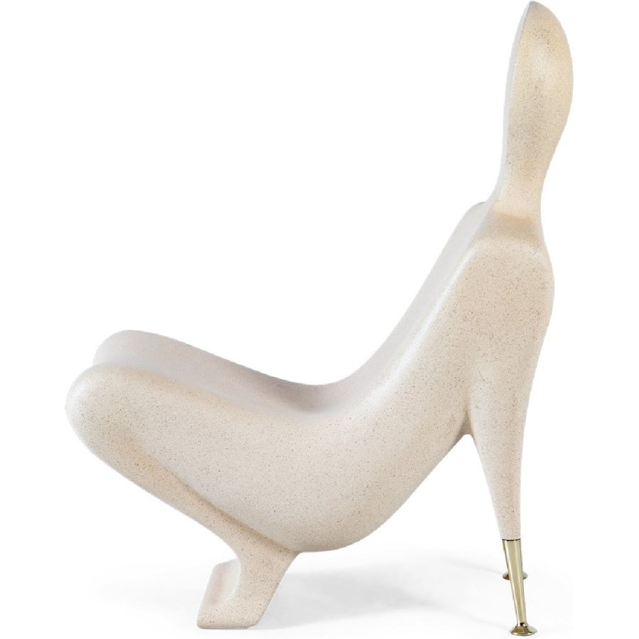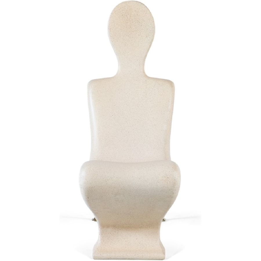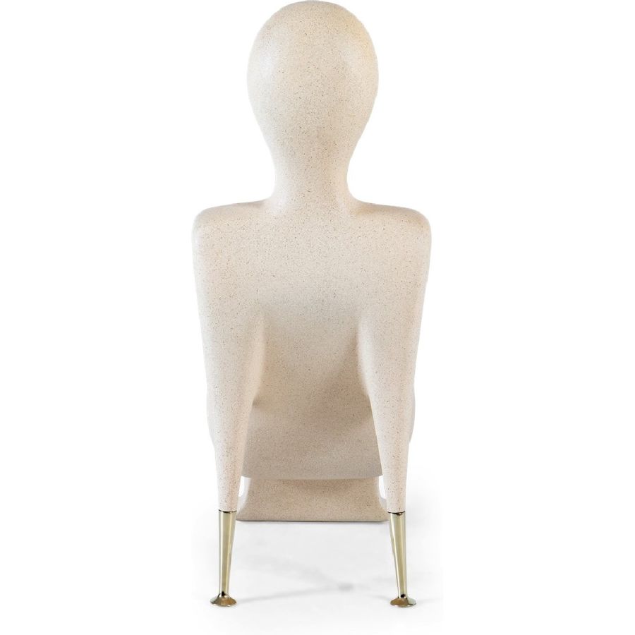 A synthesized limestone figure transformed into a surprisingly comfortable Modernist style accent chair, beautifully hand cast and with subtle brass arm supports. Art has never been this practical.