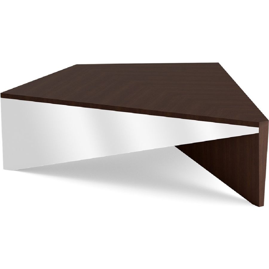 With a lightness of being that makes it appear almost to float, this extraordinary contemporary coffee table is designed in the shape of a kite and expertly crafted with a wooden top and a base of wood and mirror.