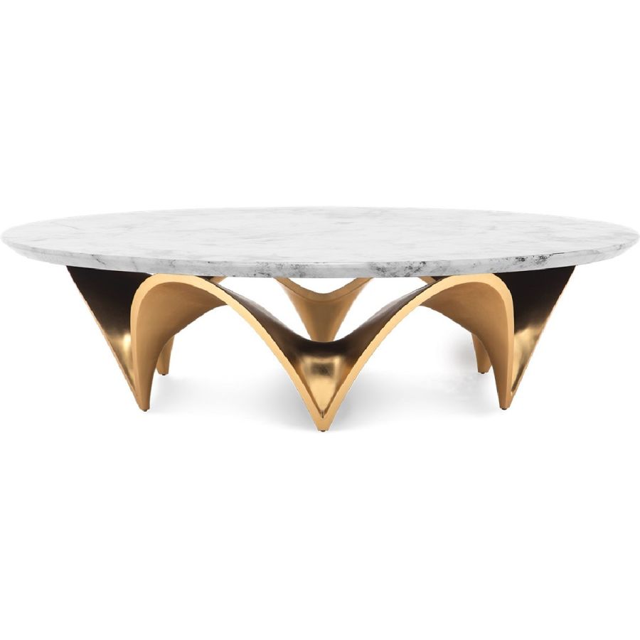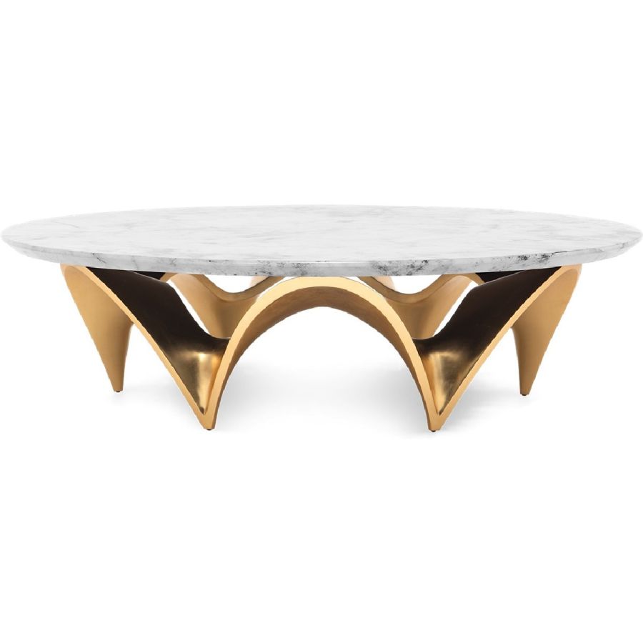 Inspired by the waves of the extraordinary City of Arts and Sciences by Santiago Calatrava, in the Spanish city of Valencia, this coffee table features a circular marble top on a hand carved base formed of wavy arches. Just spectacular!