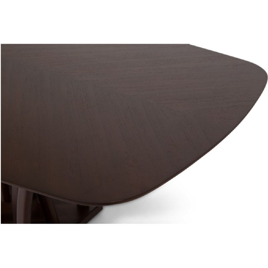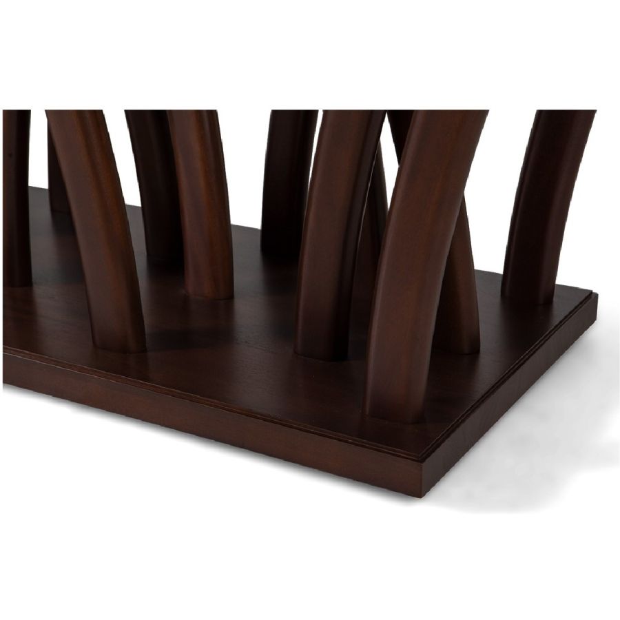 A simply fabulous dining table, with veneered top supported by a series of interwoven mahogany Chris-cross legs.