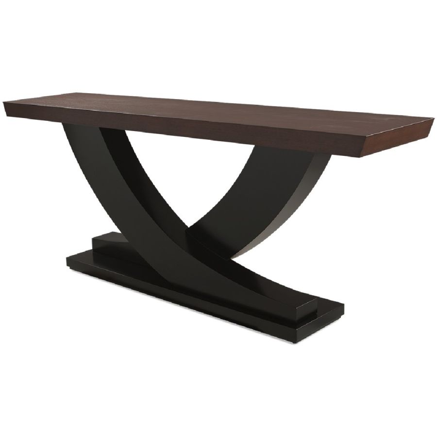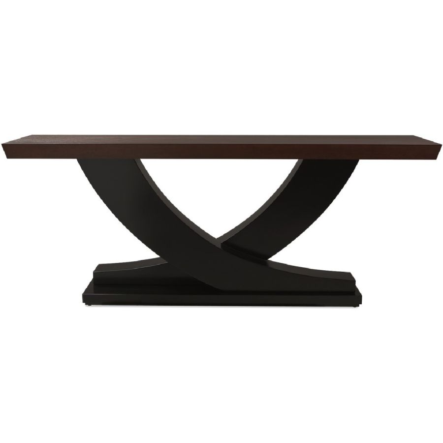 Understated, elegant and centred around a variation of the signature Chris-cross, this console table displays gently curved legs merging seamlessly into a solid mahogany square top.