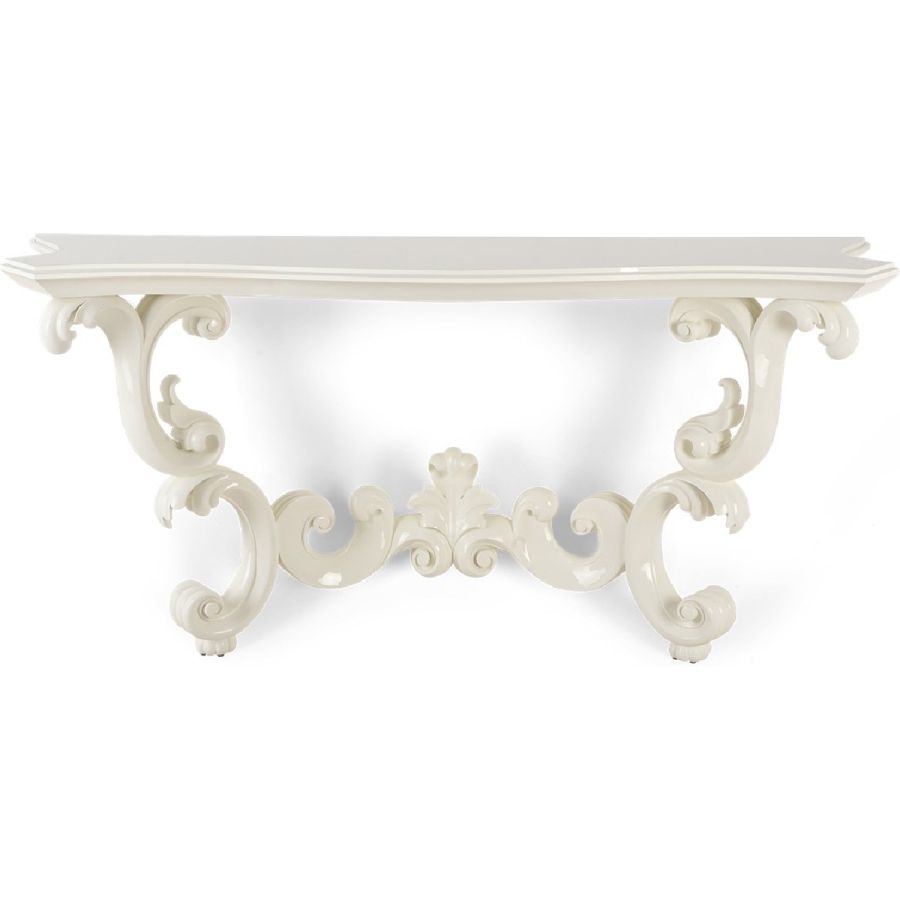 Certified Mahogany hardwood. Hand crafted by Master carvers. Veneered Mahogany top. Available in a selection of exceptional Standard and Premium finishes. Wall mounted console table (Professional installation required). For residential use only. Commercial use is classified as Special Order Design (SOD), and alternative materials may be required. Contact us for details.